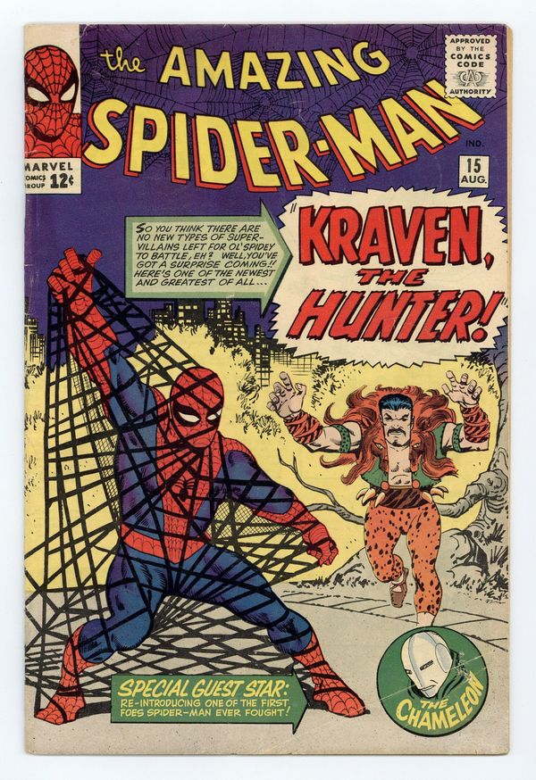 Cover art by Steve Ditko. First appearance of Kraven the Hunter in Kraven the Hunter!, script by Stan Lee, art by Steve Ditko; The Chameleon hires his old friend Kraven the Hunter to hunt down Spider-Man. Reprinted in Marvel Tales # 10 and 153. 36 pgs. $0.12. Cover price $0.12. Grade: GD+ 2.5 explanation of grade Condition: Used (collectible)