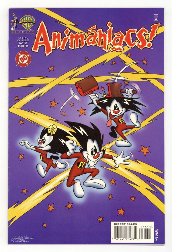 Starts Mar 9 Guest-starring Freakazoid! There's never a boring day on the Warner Bros. lot, especially when the studio's latest star is some blue guy in red underwear! Yakko, Wakko and Dot learn how to make swooshing noises as they pretend to fly through the air like their favorite super-hero, Freakazoid! Plus, crossovers with Mars Attacks!, Alien, and Blade Runner. Written by Jennifer Moore and Sean Carolan. Art and cover by Leonardo Batic and Scott McRae. FC, 32 pg. Cover price $1.95. Grade: FN- 5.5 explanation of grade Condition: Used (collectible)