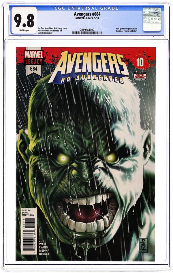 Tags: Marvel Legacy Numbering: Avengers (part 684), No Surrender (Marvel) (part 10), Road to Immortal Hulk (part 12), Avengers, Marvel Legacy (2017)Avengers (2017 7th Series) 684A CGC 9.8 Brooks