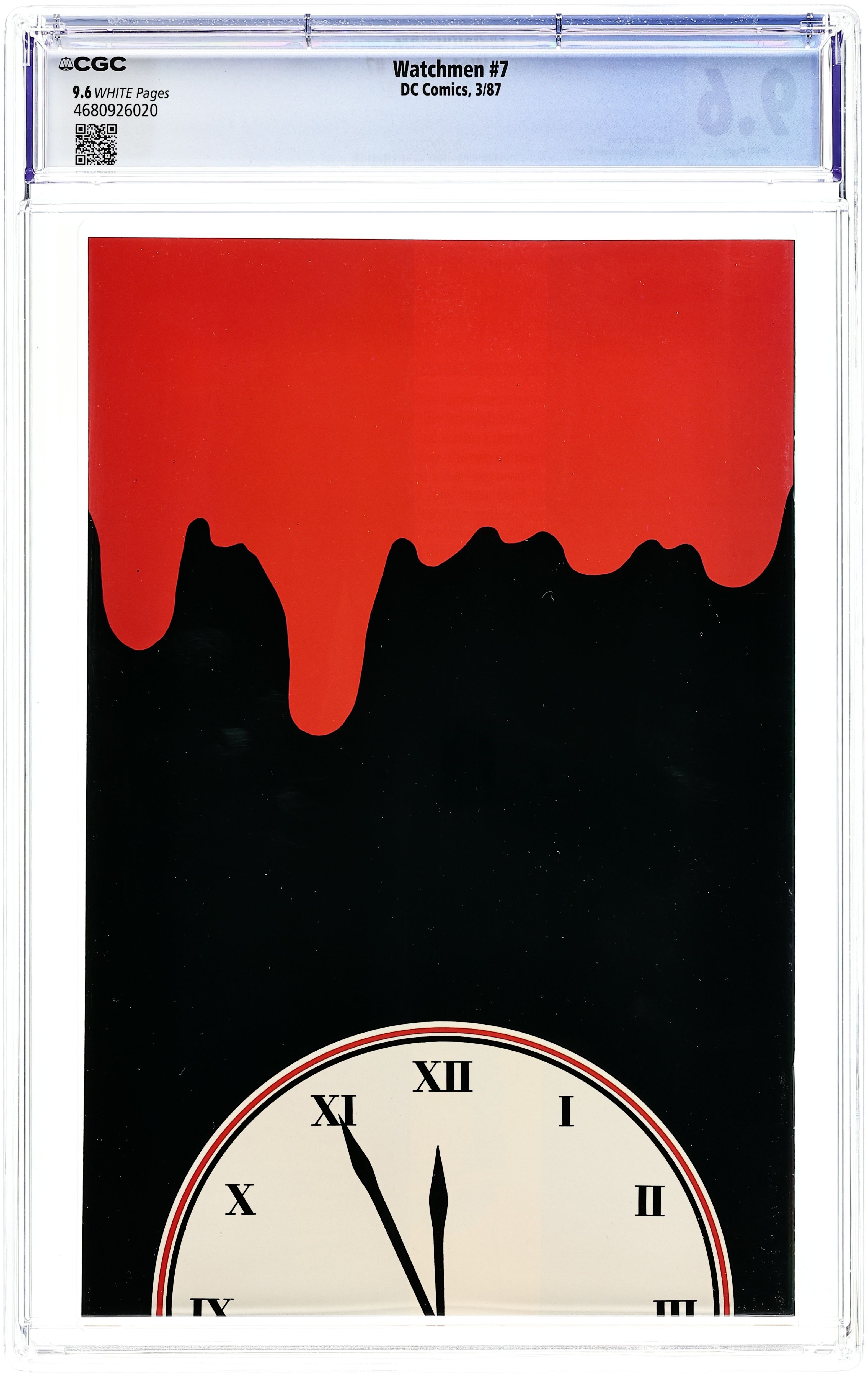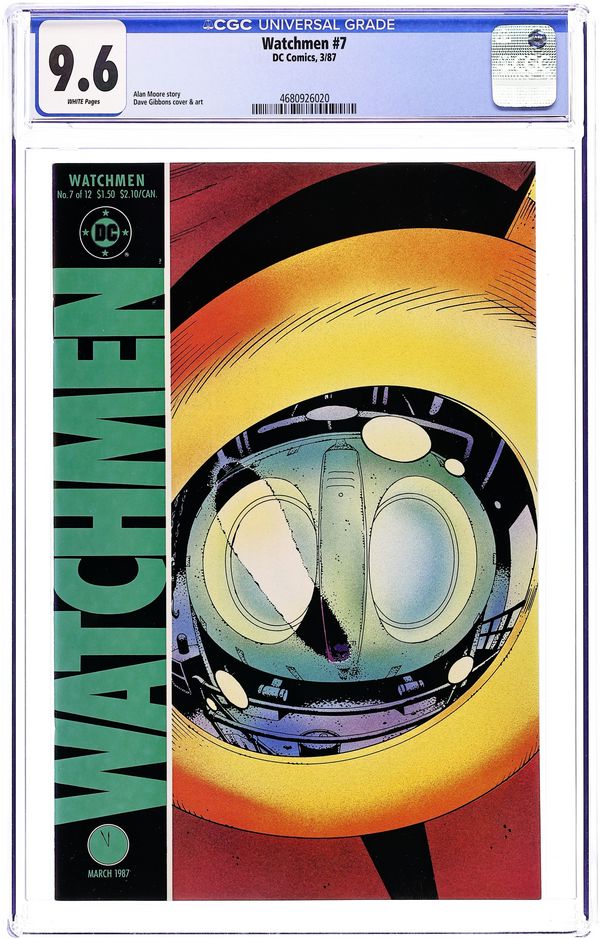 A brother to dragons. Part 7 of 12. Story by Alan Moore. Art and cover by Dave Gibbons. Night Owl and Silk Spectre return to active duty. Along the way we learn a lot more about what makes costumed heroes do what they do. Includes four page fictional text feature presenting, Blood from the shoulder of Pallas, an article by Daniel Dreiberg. 32 pages. Full color. No ads. Cover price $1.50. Grade: CGC 9.6 explanation of grade Condition: Used (collectible)