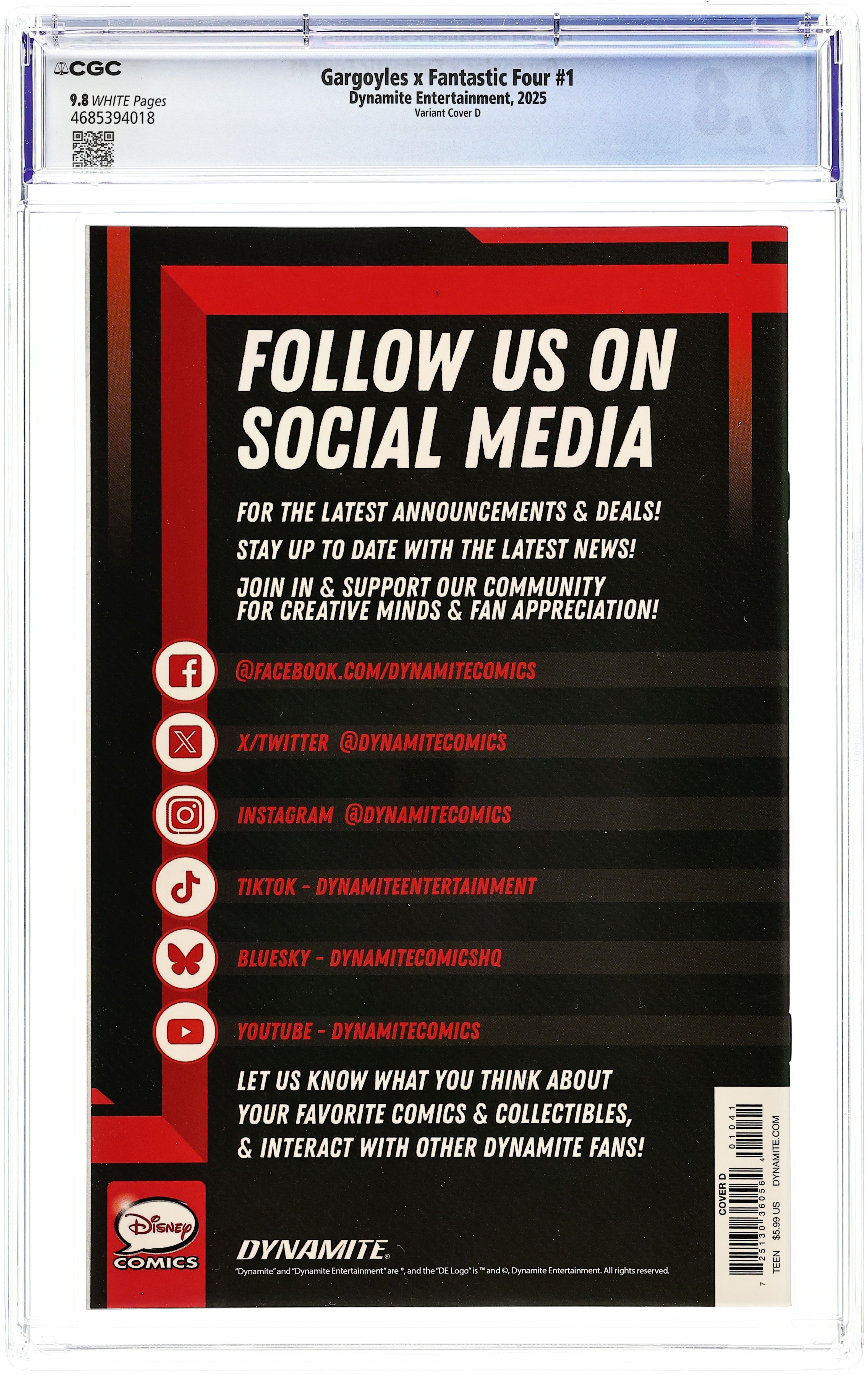Tags: Fantastic FourPublished 2025 by Dynamite Entertainment.Gargoyles X Fantastic Four (2025 Dynamite) 1D CGC 9.8