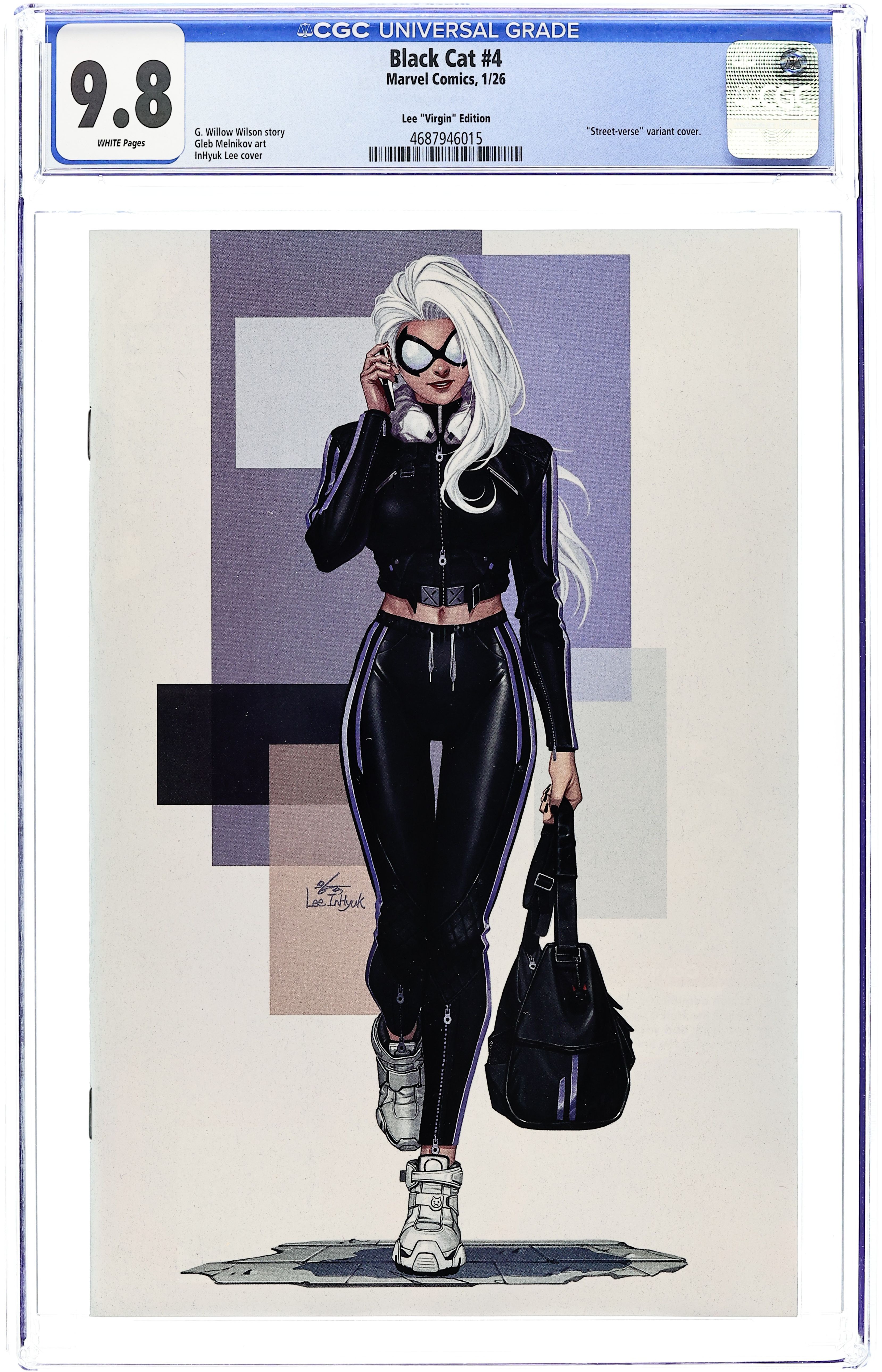 Starts Mar 9 Limited 1 for 50 Retailer Incentive Variant Cover. (W) G. Willow Wilson (A) Gleb Melnikov (CA) Inhyuk Lee CAUGHT IN A TRAP! BLACK CAT's little super-hero game is up as far as Spider-Man's deadliest foes are concerned - and they've sprung a trap Felicia Hardy may not even be able to dodge! She'll need every scheme (and all nine of her lives) to get out of this one⦠Cover price $3.99. Grade: CGC 9.8 explanation of grade Condition: Used (collectible) unless item is a new release