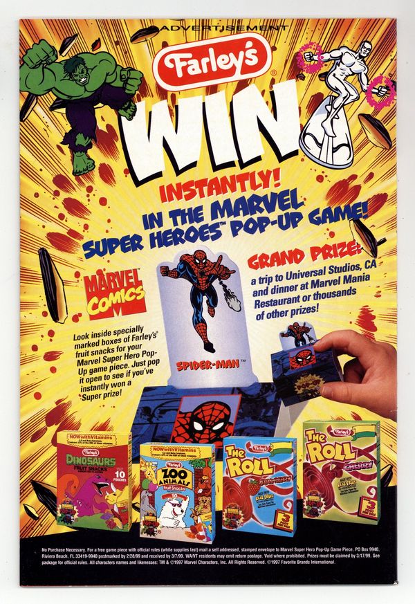 Starts Mar 23 Cover pencils by Tom Lyle, inks by Bud LaRosa. "The Carnage Cosmic," script by Tom DeFalco, pencils by Joe Bennett, inks by Bud LaRosa; Silver Surfer takes to space to fight the symbiote without harming innocents, leaving Spider-Man to assist the helpless Cletus Kasady; Martha Robertson is treated for her arm wound and condemns Robbie for thinking like a newsman instead of a concerned husband; Spidey brings Cletus to the same hospital, where it's discovered the symbiote was keeping his stomach cancer at bay; Escaping police capture and bystanders trying to collect the Bugle's bounty, Spidey decides to let the world deal with a symbiote-possessed Surfer without him until he sees the Surfer heading towards the hospital to restore the symbiote to Kasady; Spidey tries to stop him until Surfer convinces him otherwise; Carnage is restored, but the Surfer encases him in an ethereal energy shell so he can't harm anyone. Later, at the Bugle, Robbie hands Jonah his resignation. Galactus cameo. 38 pgs., full color. $1.99. Cover price $1.99. Grade: FN 6.0 explanation of grade Condition: Used (collectible)
