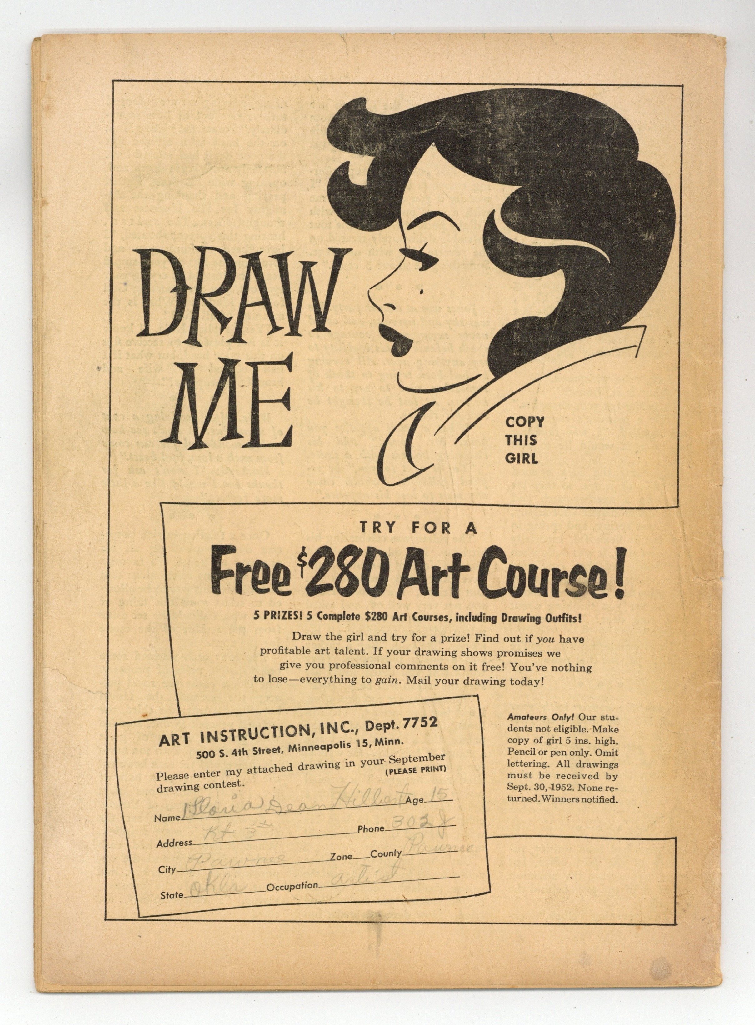 Starts Apr 4 Cover by Matt Baker. Stories and art by Matt Baker, Lily Renee and Dana Dutch. Tales of teen angst and amour, often featuring art and covers by celebrated good-girl artist Matt Baker. Anne wants to join the Madcaps, a high-school sorority, so everyone doesn't think she's "just a droop," but when the initiation pits her against her boyfriend Larry, she has to make a choice. Betty is more interested in horses than men, until she meets Tipton, the new trainer, in a story with art by Baker and a cute title, "I Was a Willy-Nilly Filly." Tina goes to New York to live with her cousin Janet and soon falls for Janet's boyfriend Bill, in a story with art by pioneering female comics artist Lily Renee. Gag-Bag; No Holds Barred; I Spread Rumors; I Went the Limit; I Was a Willy-Nilly Filly; Man Crazy; Quips and Queries; The Lighter Side. 32 pages, Full Color. Cover price $0.10. Grade: GD/VG 3.0 explanation of grade Condition: Used (collectible)