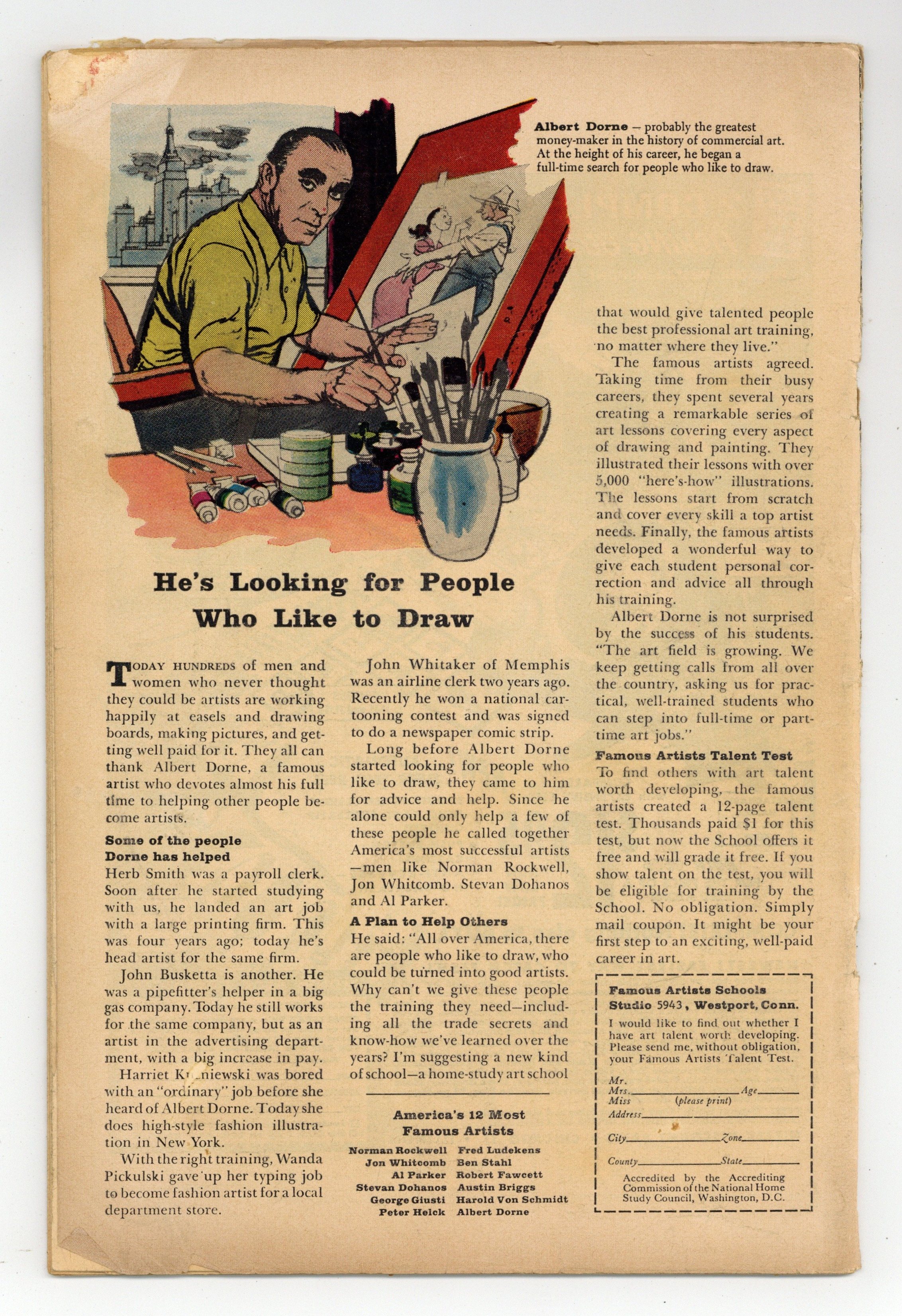 Starts Mar 23 Cover pencils by Jack Kirby, inks by Dick Ayers. "Thor and Loki Attack the Human Race!", script by Stan Lee (plot) and Robert Bernstein (script), art by Joe Sinnott; Loki uses his magic to cause Thor's hammer to hit his head, turning him evil; Odin and Heimdall appearances. "Bird Talk" two-page text story. "Dinner Time on Deimos!", script by Stan Lee (plot) and Larry Lieber (script), art by Larry Lieber; In the future, Earth is overpopulated, and even the very rich must work an hour on a farm each week to produce enough food. "The Gentle Old Man!", script by Stan Lee, art by Steve Ditko; A greedy landlord is captured by a time traveler who maintains a collection of 'dolls' consisting of miniaturized heartless people from different eras. 36 pgs., full color. $0.12. Cover price $0.12. Grade: GD/VG 3.0 explanation of grade Condition: Used (collectible)