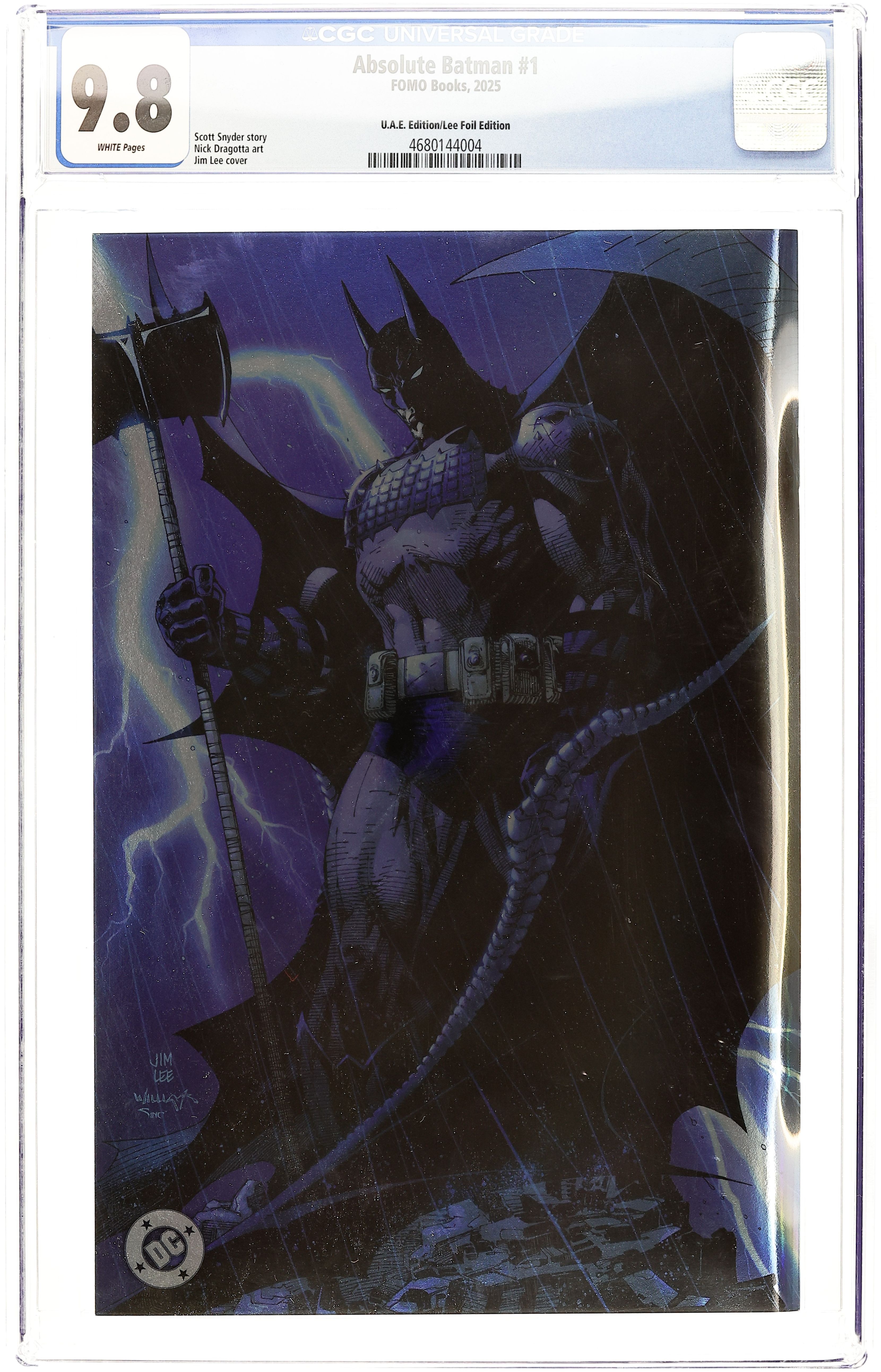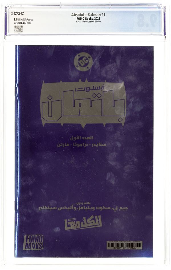 Published 2025 by FOMO Books.Absolute Batman (United Arab Emirates 2025 FOMO Books) 1LEE.FOIL CGC 9.8