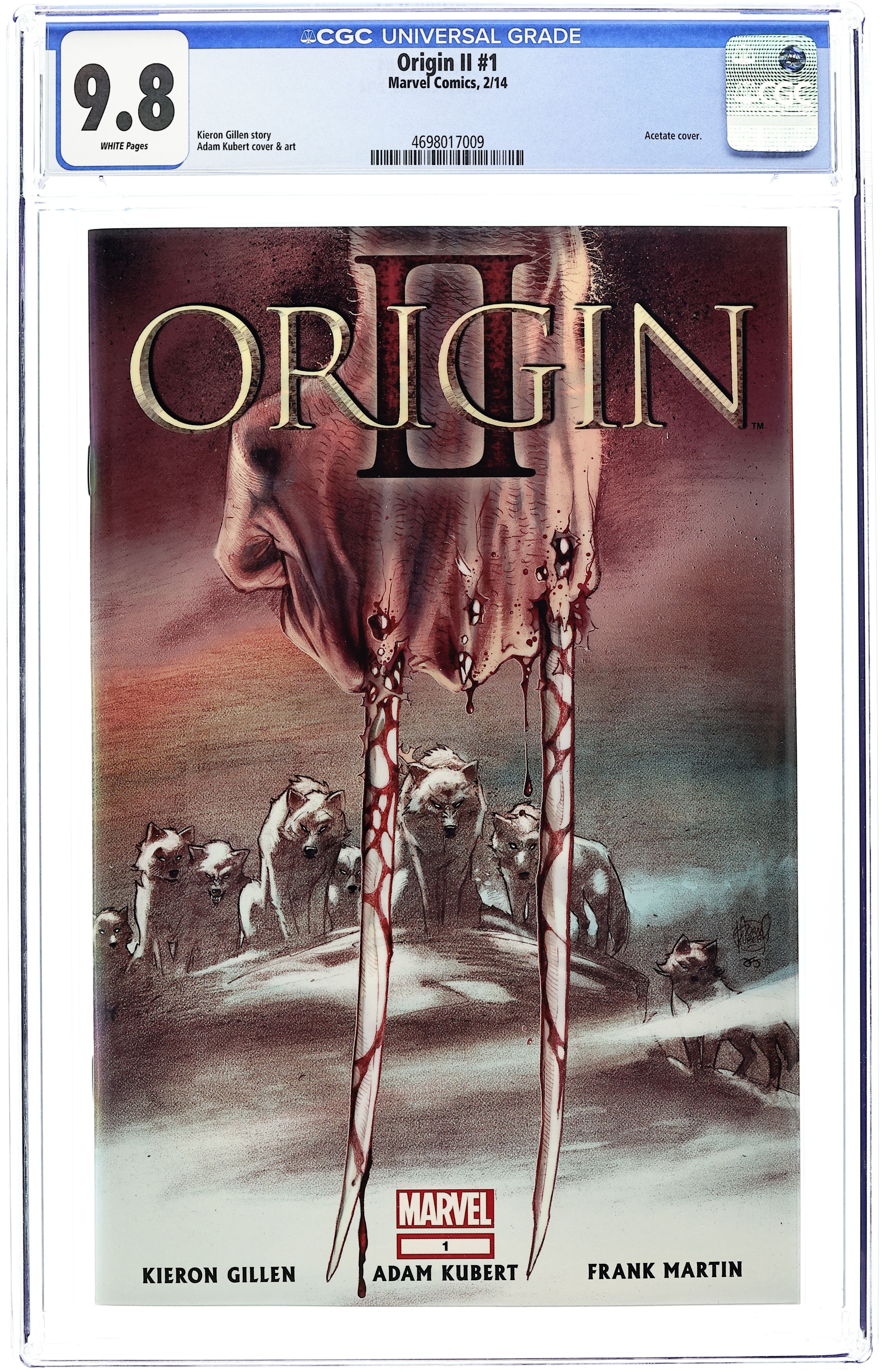 Starts Apr 4 Written by Kieron Gillen. Art and Cover by Adam Kubert. Featuring a special Collector's Edition Acetate Cover! Part 1 of 5! A few years after the events of ORIGIN finds James Howlett running with the wolves…until something unexpected brings him back into the world of Follow the first 'X-Man' as he finds his way back to civilization and falls afoul of someone Sinister, who's just discovering mutantkind and the horrors he can visit on them. Plus, discover the secret behind James' greatest enemy! At some point, the mutant who will become The Wolverine must choose: is he man or is he beast? An all-new chapter in the secret origin of one of Marvel's most mysterious characters is revealed starting this November, by superstars Kieron Gillen (YOUNG AVENGERS, IRON MAN) and Adam Kubert (AVENGERS, UNCANNY X-MEN, WOLVERINE)! Cover price $4.99. Grade: CGC 9.8 explanation of grade Condition: Used (collectible)
