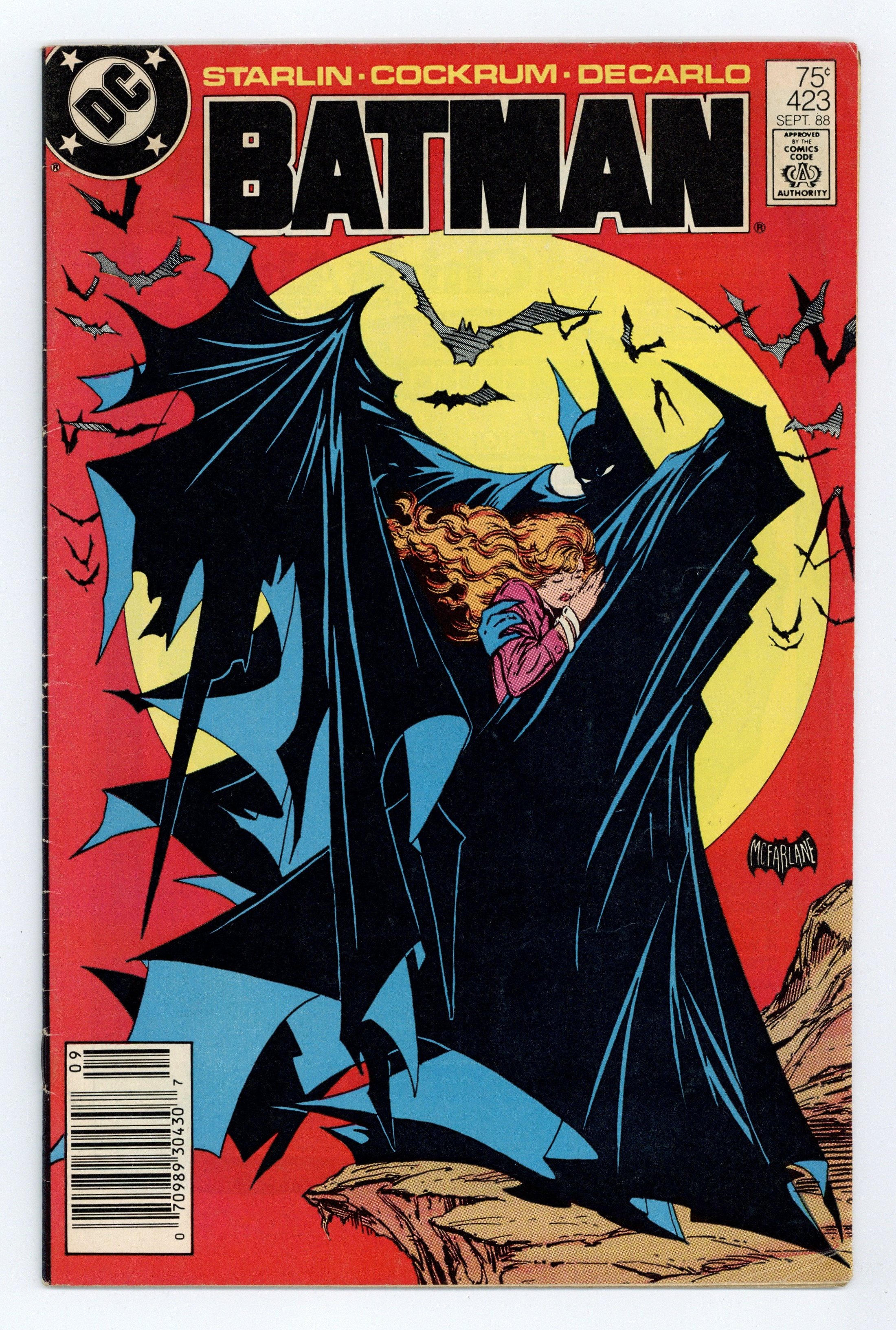 Ends Mar 23 7:34 PM CST Bid History 3 bids Current Bid $31 Your Secret Max Bid If you'd like to bid, please log in or register. First Printing. Newsstand Edition. Three cops relate three tales of the Dark Knight, revealing different facets of Batman's character, in "You Shoulda Seen Him..." Script by Jim Starlin, pencils by Dave Cockrum, inks by Mike DeCarlo. Todd McFarlane cover. 1st printing. NOTE: Most issues from 397-432 were reprinted in 1989 and sold in multipacks. These 2nd and 3rd prints have back cover ads dated 1989. 36 Pages, Full Color. Cover price $0.75. Grade: VG- 3.5 explanation of grade Condition: Used (collectible)