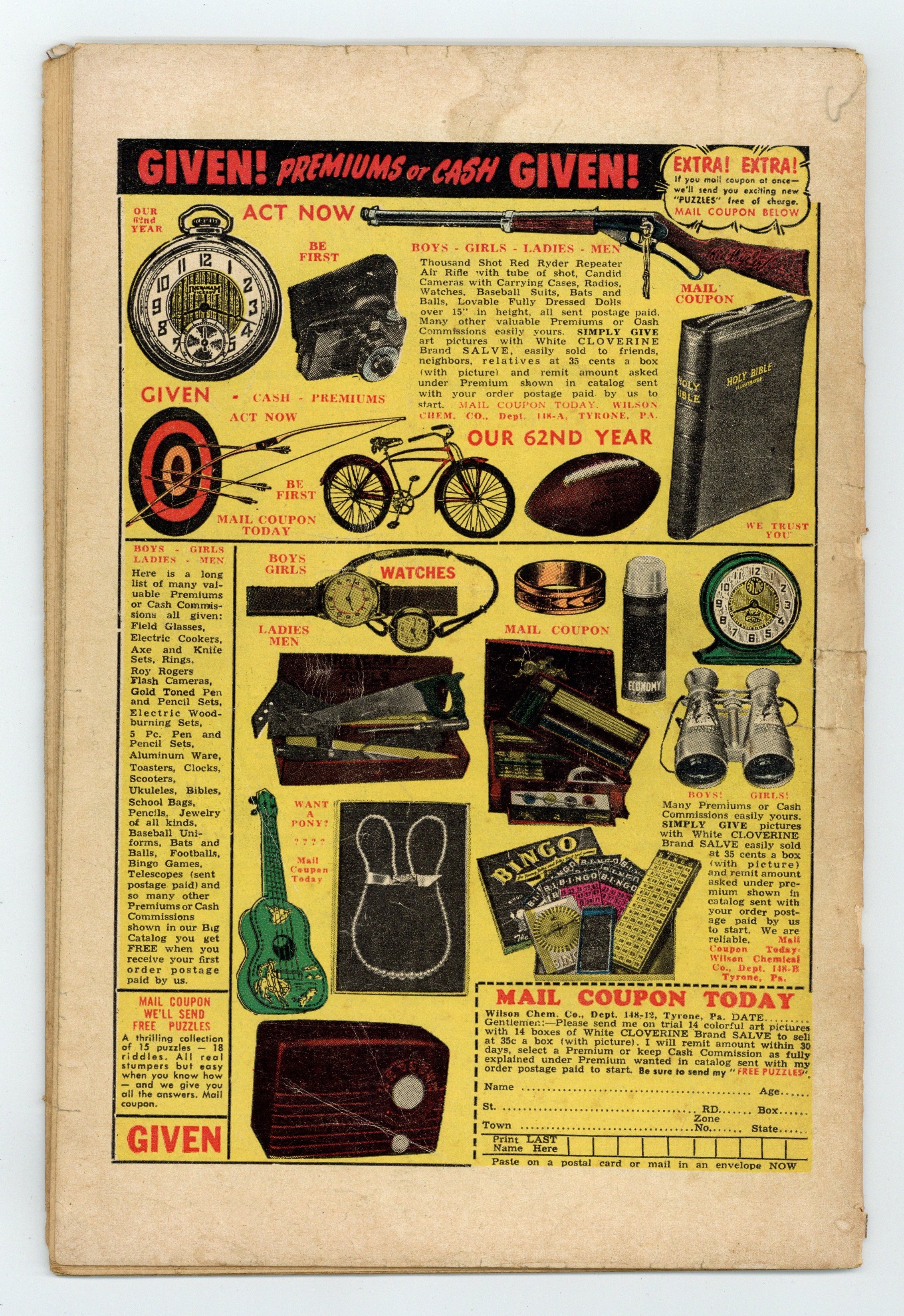 Starts May 18 "Help, Help!" with art by Gene Colan; "When the World Went Mad!" with art by Bernard Krigstein; "What Waits in the Dungeon?" with art by George Woodbridge; "Trapped in the Burning Sands"; "The Fearful Fate of Mr. Foster"; "The Death Mask!"; and "Magic Mist Foam." 36 pgs. Cover price $0.10. Grade: GD 2.0 explanation of grade Condition: Used (collectible)