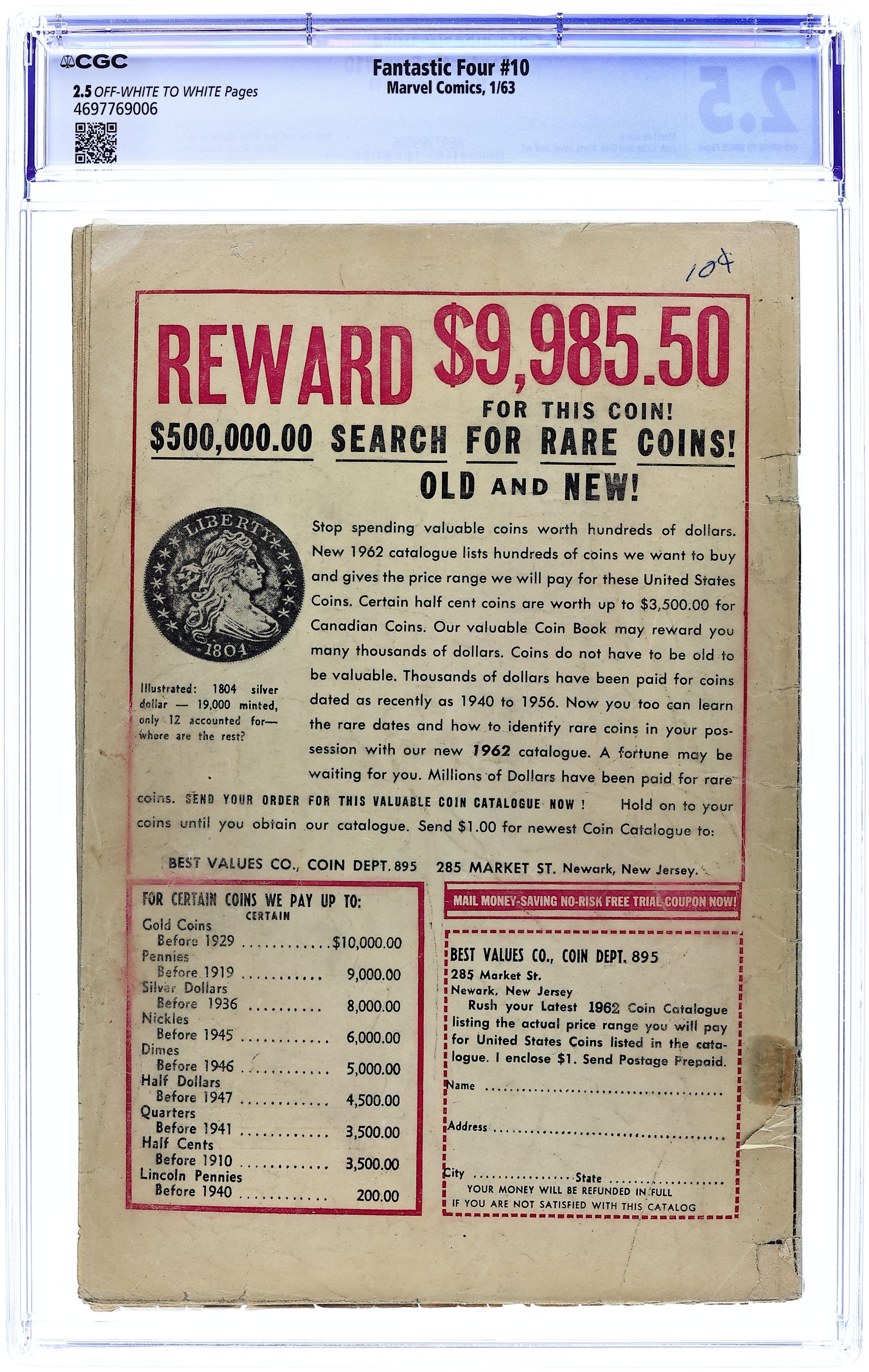 Fantastic Four (1961 1st Series) 10 CGC 2.5