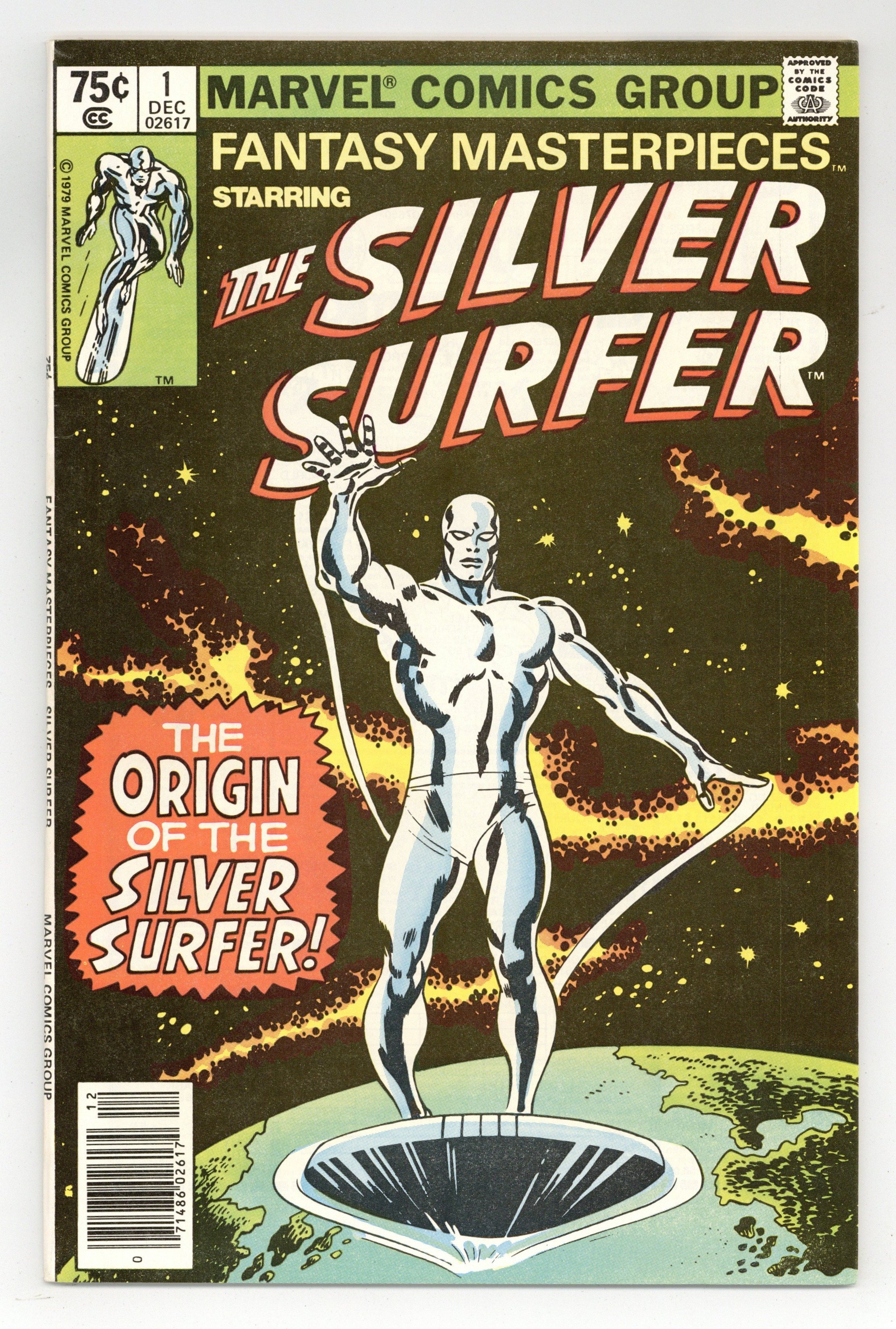 Newsstand Edition. Reprints Silver Surfer (1969 1st Series) #1. "The Origin of the Silver Surfer!" Cameos by the Incredible Hulk, Doctor Doom, and the Fantastic Four. Written by Stan Lee. Art by John Buscema and Joe Sinnott. Many years ago, in order to prevent the total annihilation of his civilization and homeworld, Norrin Radd bargained with the Devourer of Worlds. Imbued with the Power Cosmic, he became the Silver Surfer and Herald of Galactus. However, on the fateful day he arrived on Earth, for love of humanity, he betrayed his master, and thus was cursed to never traverse the space-ways again. This is his story. Cover price $0.75. Grade: VF 8.0 explanation of grade Condition: Used (collectible)
