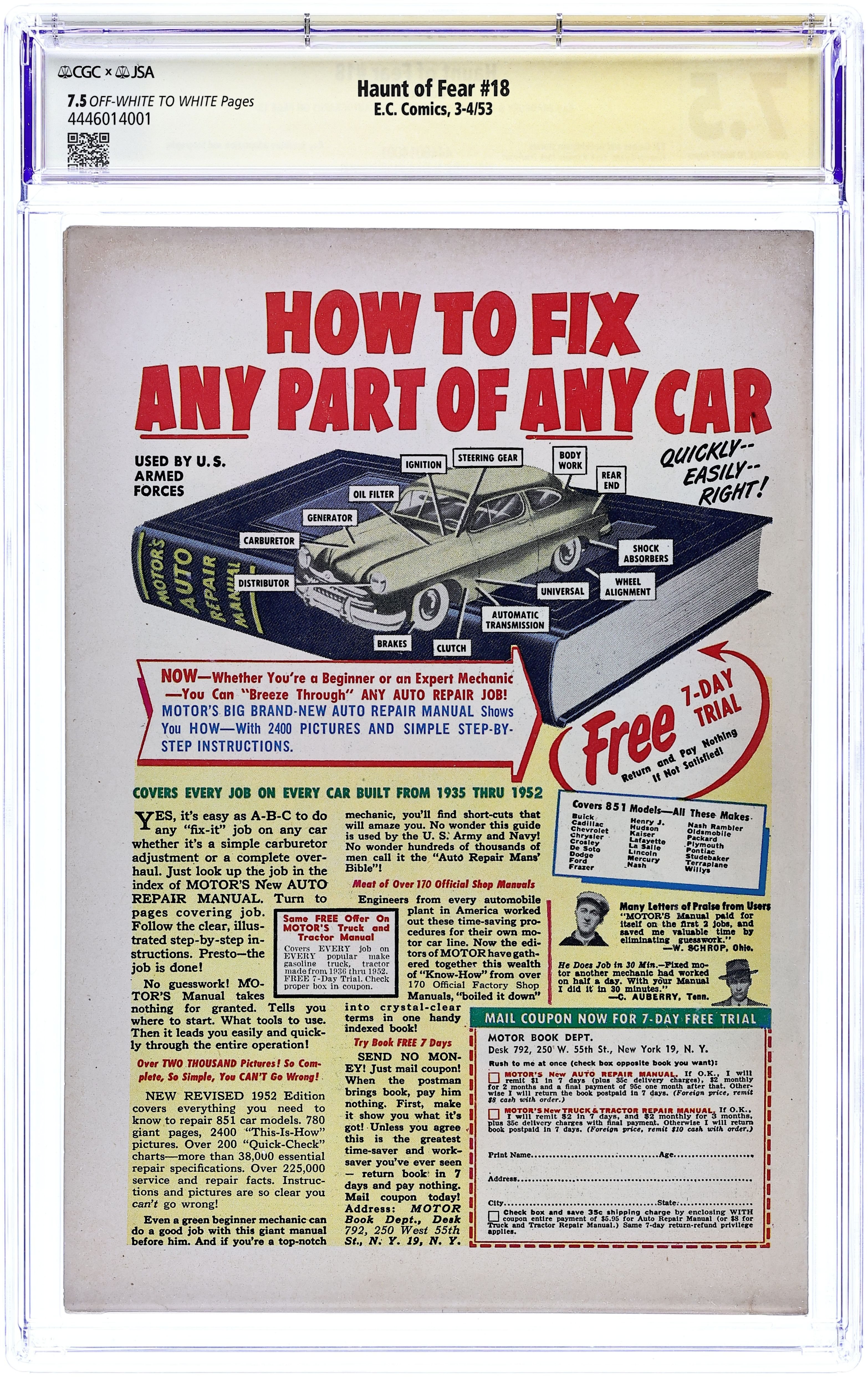 Haunt of Fear (1950 E.C. Comics 2nd Series) 18 CGC 7.5 JSA Bradbury/Davis