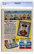 Cover by Harry G. Peter. Untitled story, script by William Moulton Marston (as Charles Moulton), art by Harry G. Peter; Wonder Woman flies to Paradise Island to celebrate Diana's Day, unaware she's brought a stowaway - one of Paula von Gunther's slave girls, intent on killing Wonder Woman and guiding a Japanese destroyer to the Amazon homeland. Untitled story, script by William Moulton Marston (as Charles Moulton), art by Harry G. Peter; Paula enslaves Steve and Wonder Woman and leads them into an underground deathtrap. "Nurse Edith Cavell," script by Alice Marble, art by Sheldon Moldoff; story of Nurse Edith Cavell (1865-1915), who helped allied soldiers escape German custody so they could rejoin the war effort. Untitled story, script by William Moulton Marston (as Charles Moulton), art by Harry G. Peter; Learning the cause of Paula's villainy, Wonder Woman travels to Nazi Germany to retrieve the Baroness' daughter from a concentration camp. "Ordeal of Fire," script by William Moulton Marston (as Charles Moulton), art by Harry G. Peter; In preventing a Nazi plot to destroy a munitions factory and saving Wonder Woman's life, Paula von Gunther is redeemed and accepted into Aphrodite's service as a neophyte. Two-page Hop Harrigan text story, "The Furlough." Full-page ad for the Junior Justice Society of America fan club. 68 Pages, Full Color. Cover price $0.10. Grade: CGC 7.5 explanation of grade Condition: Used (collectible)