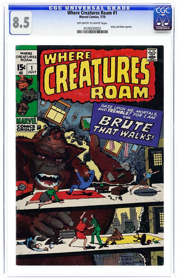 Starts May 4 Cover pencils by Jack Kirby and Marie Severin (alterations), inks by Steve Ditko and Marie Severin (alterations). All reprints: "I Am the Brute That Walks!", pencils by Jack Kirby, inks by Dick Ayers; Scrawny scientist Howard Avery develops a growth serum so his girlfriend Sally will like him better, but it turns him into a giant monster. "Kragoo!", art by Don Heck; An alien soldier is given immense strength and the ability to possess the body of one victim in order to hypnotize the population of their target planet. "Fear in the Night," art by Steve Ditko; Two space explorers, a human and a robot, crash-land on an unknown planet where they are menaced by a monster. 36 pgs., full color. $0.15. Cover price $0.15. Grade: CGC 8.5 explanation of grade Condition: Used (collectible)