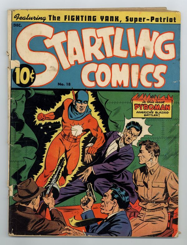 Fighting Yank story, art by Jack Binder. Pyroman origin story. Captain Future story. Four Comrades story, art by Maurice Gutwirth. Don Davis story, art by Leonard Sansone. Happy story, script and art by Kin Platt. 68 pgs. $0.10. Cover price $0.10. Grade: PR 0.5 explanation of grade Condition: Used (collectible)