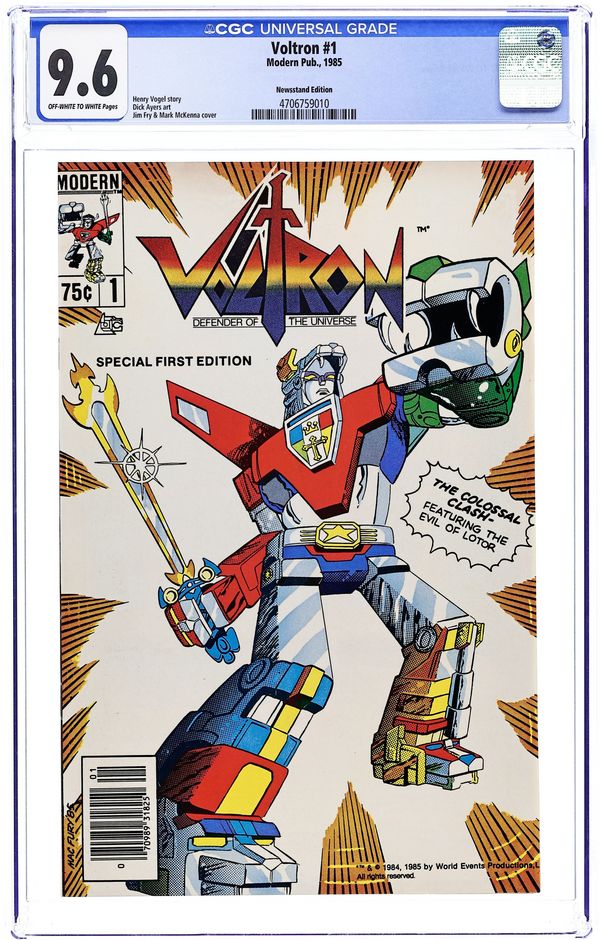 Newsstand Edition. "Will Power!" Written by Henry Vogel. Art by Dick Ayers. The sinister Prince Lotor and the cruel witch Haggar conceive a diabolical plot to mind control the leader of the Voltron Force, Keith. Can Keith resist their evil power or is this the end of Voltron?! 32 pages, FC. Cover price $0.75. Grade: CGC 9.6 explanation of grade Condition: Used (collectible)