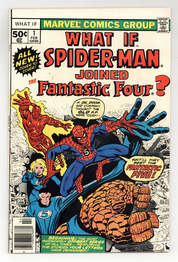 Starts May 4 Cover by Ron Wilson and Joe Sinnott. What if Spider-Man Joined the Fantastic Four? Script by Roy Thomas, pencils by Jim Craig, inks by Pablo Marcos; Spider-Man becomes a member of the FF; Cameos by Killraven, the Squadron Supreme, and Deathlok. Hostess Fruit Pie ad with the Hulk, pencils by Dave Cockrum. Ad for Richochet Racers with Spider-Man and Captain America. Roy Thomas discusses how the title came about. 52 pgs. Cover price $0.50. Grade: VG 4.0 explanation of grade Condition: Used (collectible)