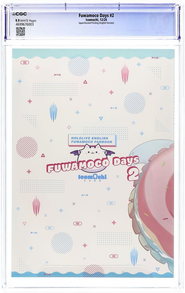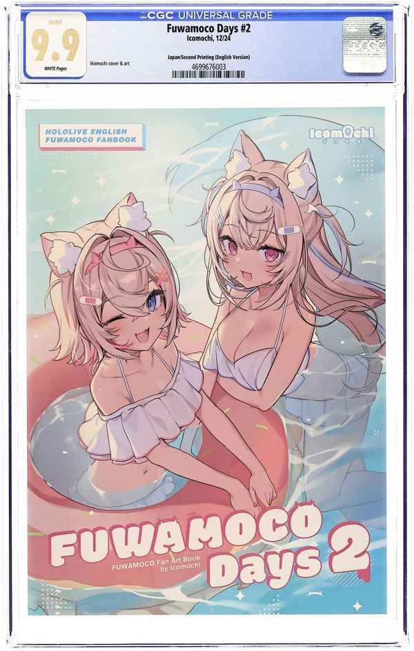 Starts Jul 4 Second Printing. English Edition. Japanese Doujinshi/Fan Art Book. Cover and Art by Icomochi. Fan art book featuring the Hololive characters, Fuwamoco. English Language. Grade: CGC 9.9 explanation of grade Condition: Used (collectible)