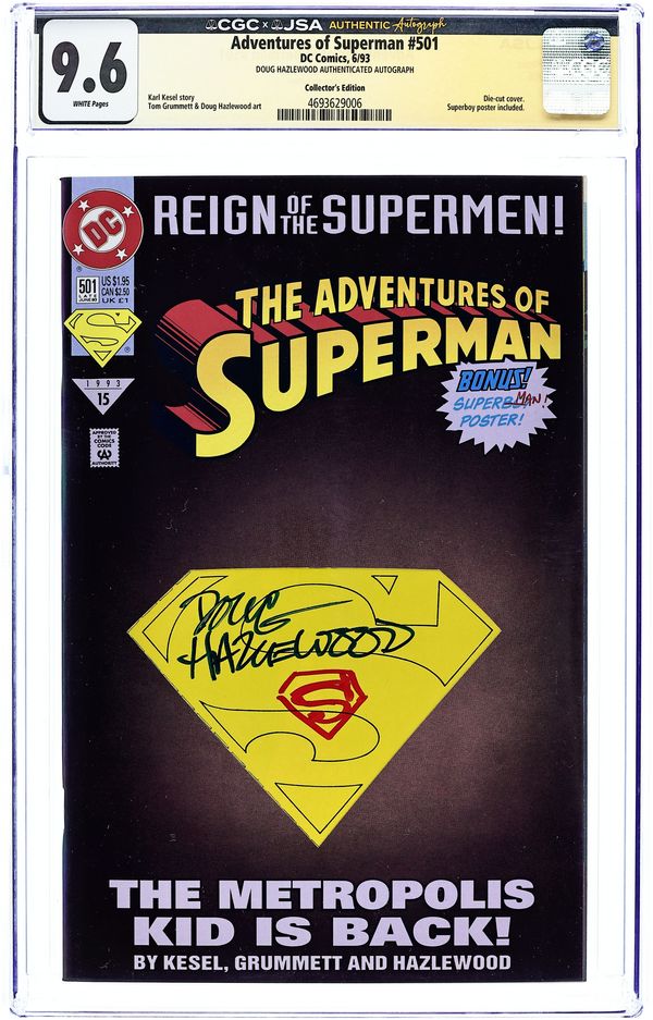 Tags: Die-Cut Covers, Reign of The Supermen (part 4), Superman 1993 Weekly Reading Order (part 15), SupermanAdventures of Superman (1987) 501A CGC 9.6 JSA Hazlewood Grummett Collector's Edition