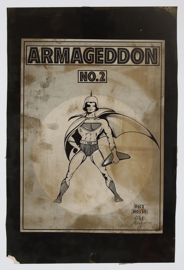 Armageddon #2 Poster (Fanzine 1967) by Dick MossoPublished 1967$85.00- Print on heavy stock. Signed by the artist. 13 1/4" x 20". NOTE: Poster displays heavy wear.