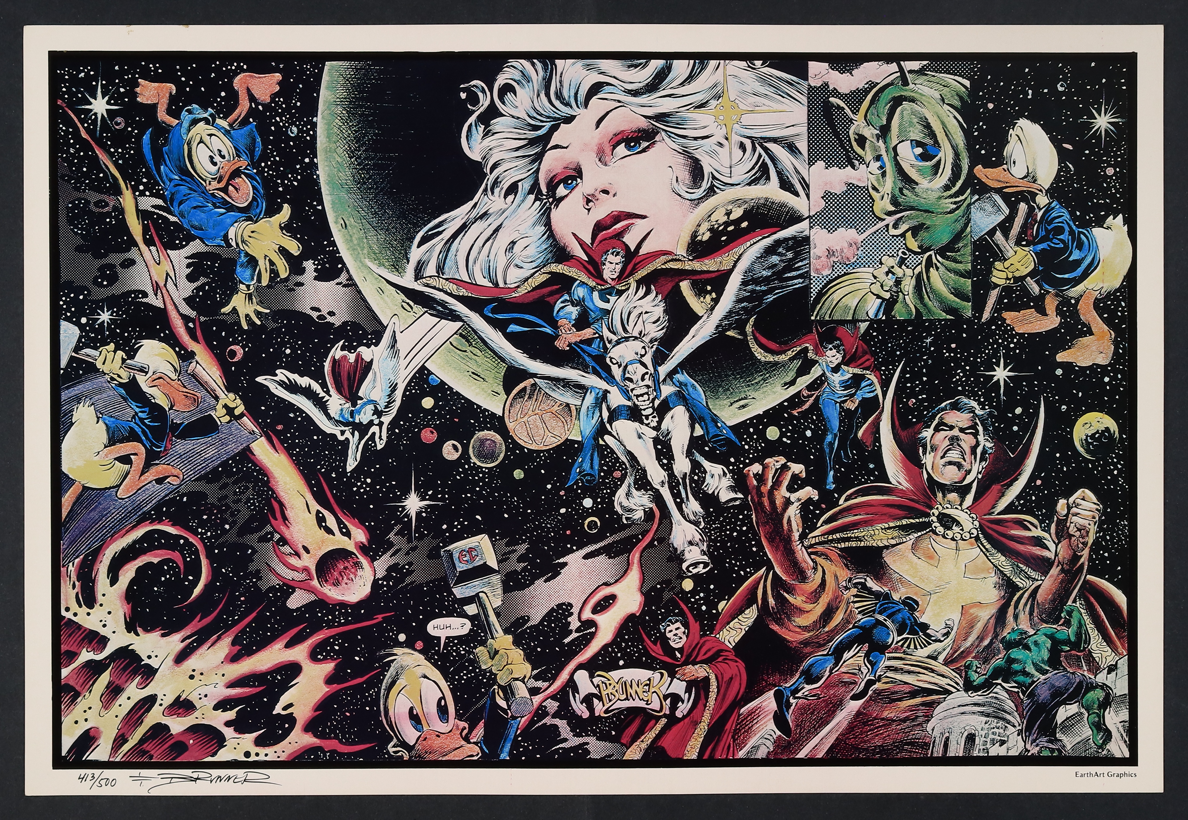 Frank Brunner's Marvel Comics PrintPublished 1977$350.00- Signed by the artist and numbered 413/500. High quality print on heavy stock. 22" x 15".