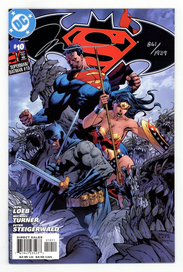 Starts May 25 Dynamic Forces Signed Edition - limited to 1939 copies, signed and numbered by Jim Lee. Includes Certificate of Authenticity from Dynamic Forces. WRITTEN BY JEPH LOEB; ART BY MICHAEL TURNER; COVER BY JIM LEE; The mystery of the Supergirl from Krypton continues! Hidden away on Paradise Island, Wonder Woman begins training the beautiful young strange visitor. But when Darkseid and The Female Furies come for her, Superman and Batman join the Amazons in a battle that leads to an unexpected death! FC, 32 pg. $2.95 Cover price $2.95. Grade: VF 8.0 explanation of grade Condition: Used (collectible)