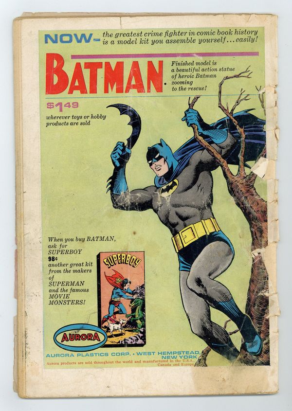 1st Silver Age Riddler appearance (the question-marked criminal hadn't appeared in a Batman book since 1948). Cover pencils by Carmine Infantino, inks by Murphy Anderson. What's Wrong with These Pictures! public service announcement, art by Bernard Baily. "Remarkable Ruse of the Riddler!" (the Batman TV pilot was based on this story), script by Gardner Fox, pencils by Sheldon Moldoff (as Bob Kane), inks by Joe Giella; The Riddler is released from prison and informs the Dynamic Duo that he has turned from crime, and, as proof, leads them to the hideout of the Molehill Mob; But when the former felon begins deluging them with riddles, the Caped Crusaders aren't sure he really has reformed. Rocky and Bullwinkle star in a one-page Cheerios ad. 36 Pages, Full Color. Cover price $0.12. Grade: FR 1.0 explanation of grade Condition: Used (collectible)