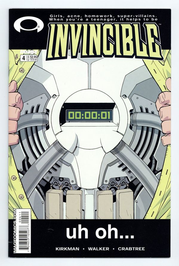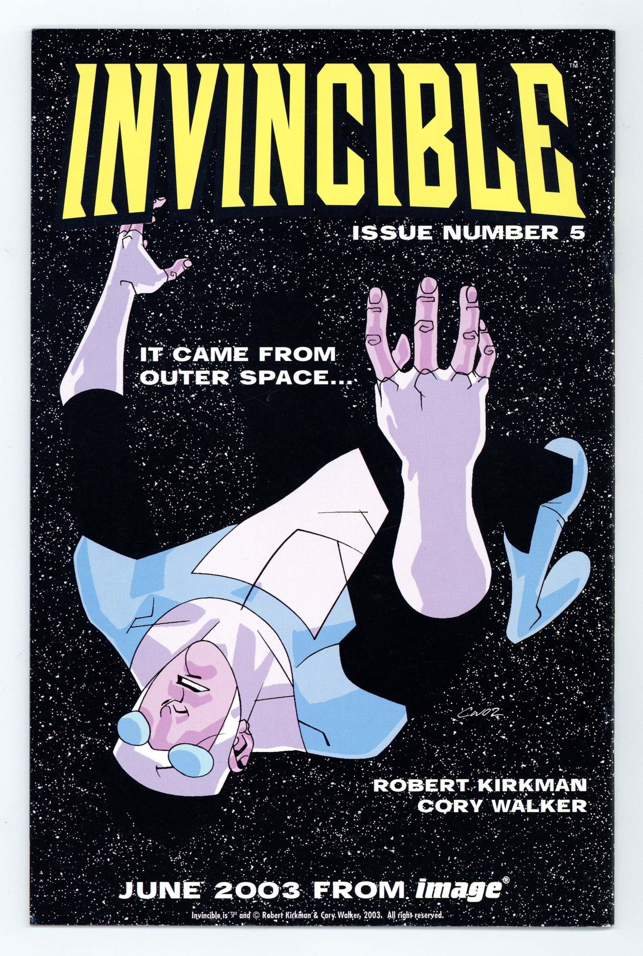 (W) Robert Kirkman (A) Cory Walker (C) Bill Crabtree (cover) Cory Walker & Bill Crabtree. FC 32pp $2.95 Ongoing Monthly series In stores the week of April 9th. The Concept: Mark Grayson is just like most everyone else his age. He's a senior at a normal American high School. He has a crappy part time job after school and on weekends. He likes girls quite a bit... but doesn't quite understand them. He enjoys hanging out with his friends, and sleeping late on Saturdays... at least until the good cartoons come on. The only difference between Mark and everyone else is that his father is the most powerful superhero on the planet, and as of late, he seems to be inheriting his father's powers. Which sounds okay at first, but how do you follow in your father's footsteps when you know you will never live up to his standards? This Issue: In this issue we finally find out what's going on with all those human bombs we've been hearing so much about. Unfortunately, Mark finds himself a hapless victim of a plot for revenge that was set in motion years ago, of which he has nothing to do with! Mark's life begins to take shape, as climactic events and situations cause him to rethink his regular course of action. Trust us, folks, all bets are off. After this one... everything will be different... in a good way, we promise. Cover price $2.95. Grade: VF- 7.5 explanation of grade Condition: Used (collectible)