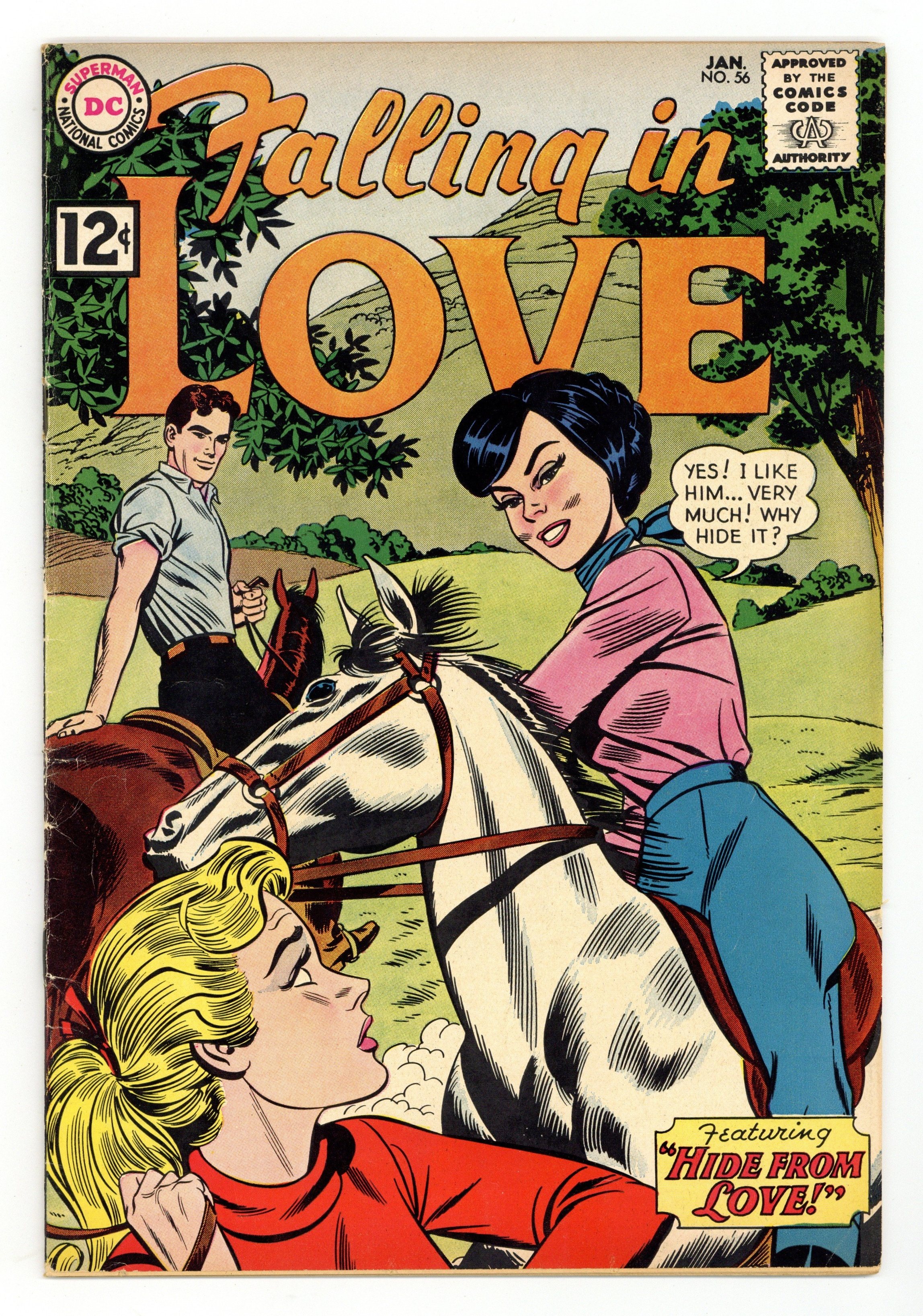 Starts May 11 Featuring: 8 page story "Too Dangerous" drawn by Bernard Sachs; 7 page story "Shadow of a Lost Love" written by Robert Kanigher and drawn by Mike Sekowsky & Bernard Sachs; 7 page story "A Secret Sorrow" written by Robert Kanigher and drawn by Tony Abruzzo; 2 page To You...From Carol Andrews letters page; 8 page story "Hide from Love" drawn by Arthur Peddy & John Romita, Sr.? Cover by Arthur Peddy & John Romita, Sr.? Cover price $0.12. Grade: VG 4.0 explanation of grade Condition: Used (collectible)