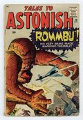 Starts May 18 Cover by Jack Kirby and Dick Ayers. Rommbu! Part One, art by Jack Kirby and Dick Ayers; An escaped geologist convicted of armed robbery leads an alien invader to an active volcano in order to sacrifice himself to destroy the alien and protect the planet. Rommbu! Part Two, art by Jack Kirby and Dick Ayers. The Tree text story. The Thing with the Red Eyes, art by Don Heck; A gangster buys a pincushion doll that looks like his rival, and his reactions to pins stuck in it convince him that it works. The Terrible Trap!, art by Steve Ditko; A hunter with contempt for the animals he captures is captured by giant aliens and placed in a maze from which he can see a rocketship he could use to pilot his way home if only he could figure out how to escape the maze. 36 pgs., full color. $0.10. Cover price $0.10. Grade: FR 1.0 explanation of grade Condition: Used (collectible)