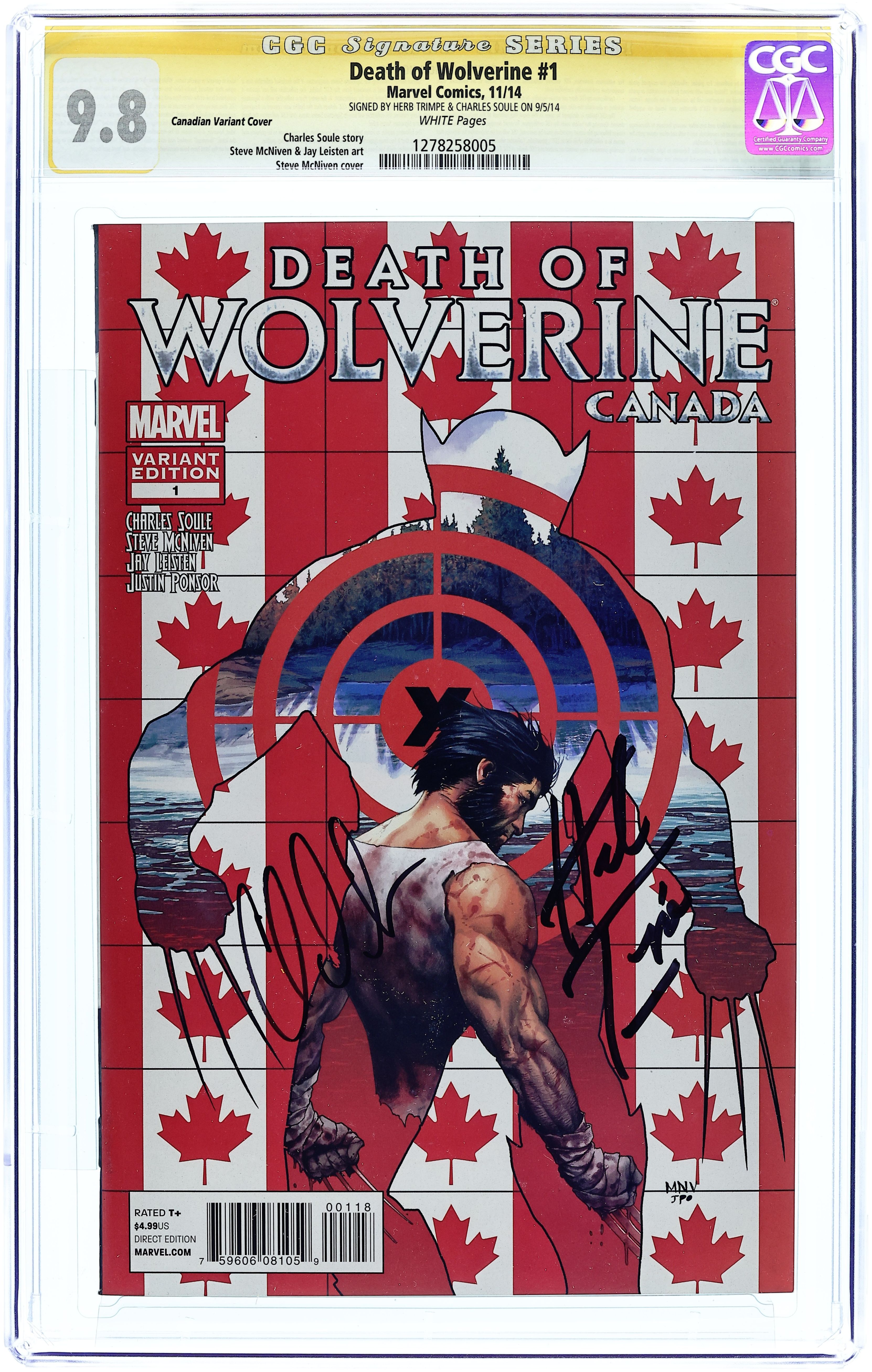 Tags: WolverineDeath of Wolverine (2014) 1J CGC 9.8 SS McNiven Canada Variant