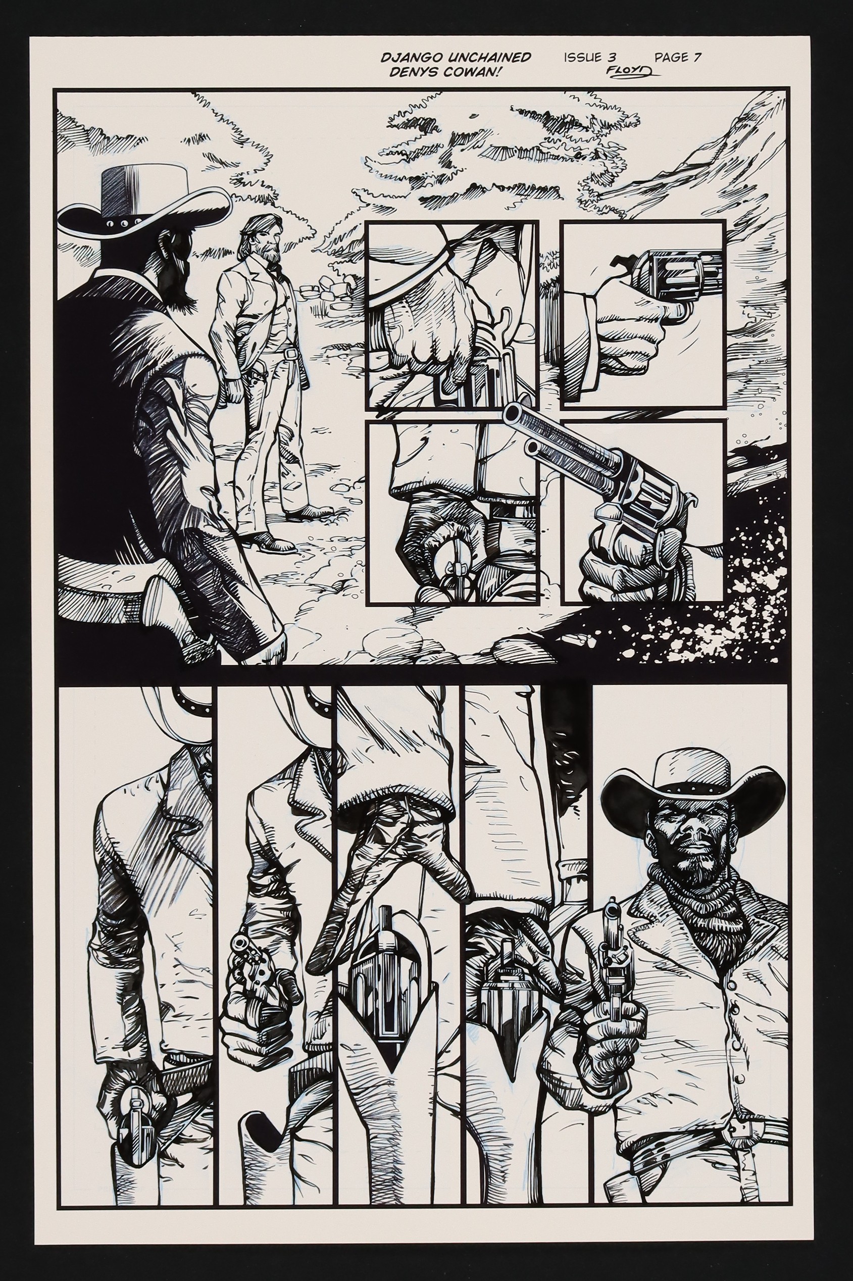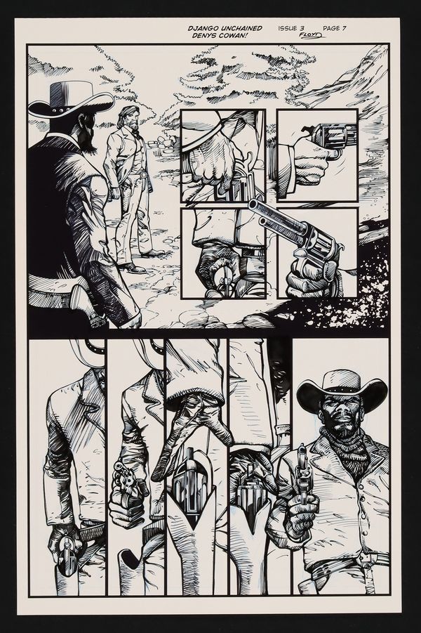Original Art from Django Unchained #3 (2013) Page 7 Inks by John Floyd, Printed Pencils by Denys CowanOriginal Art from Django Unchained #3 (2013) Page 7 Inks by John Floyd, Printed Pencils by Denys Cowan
