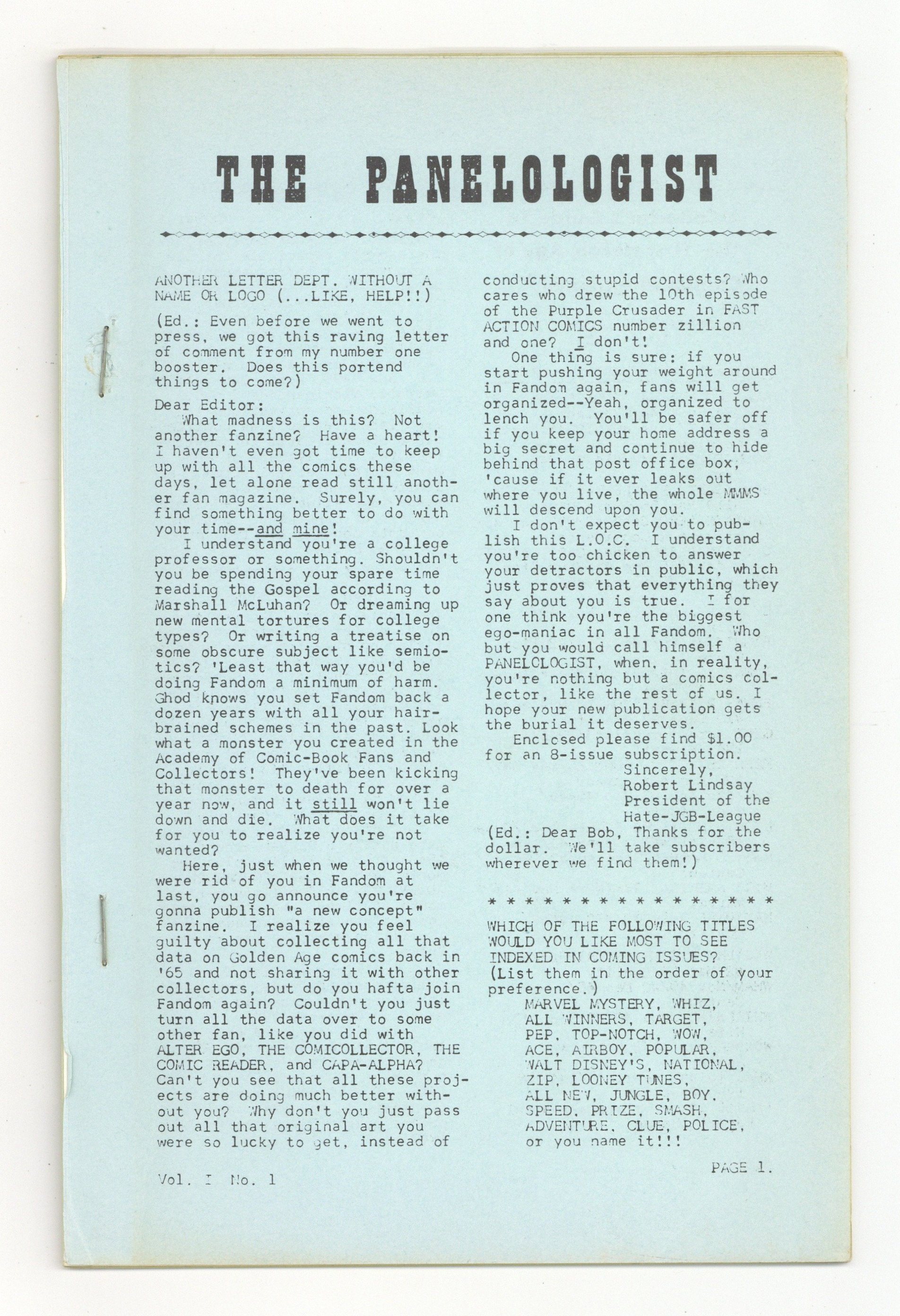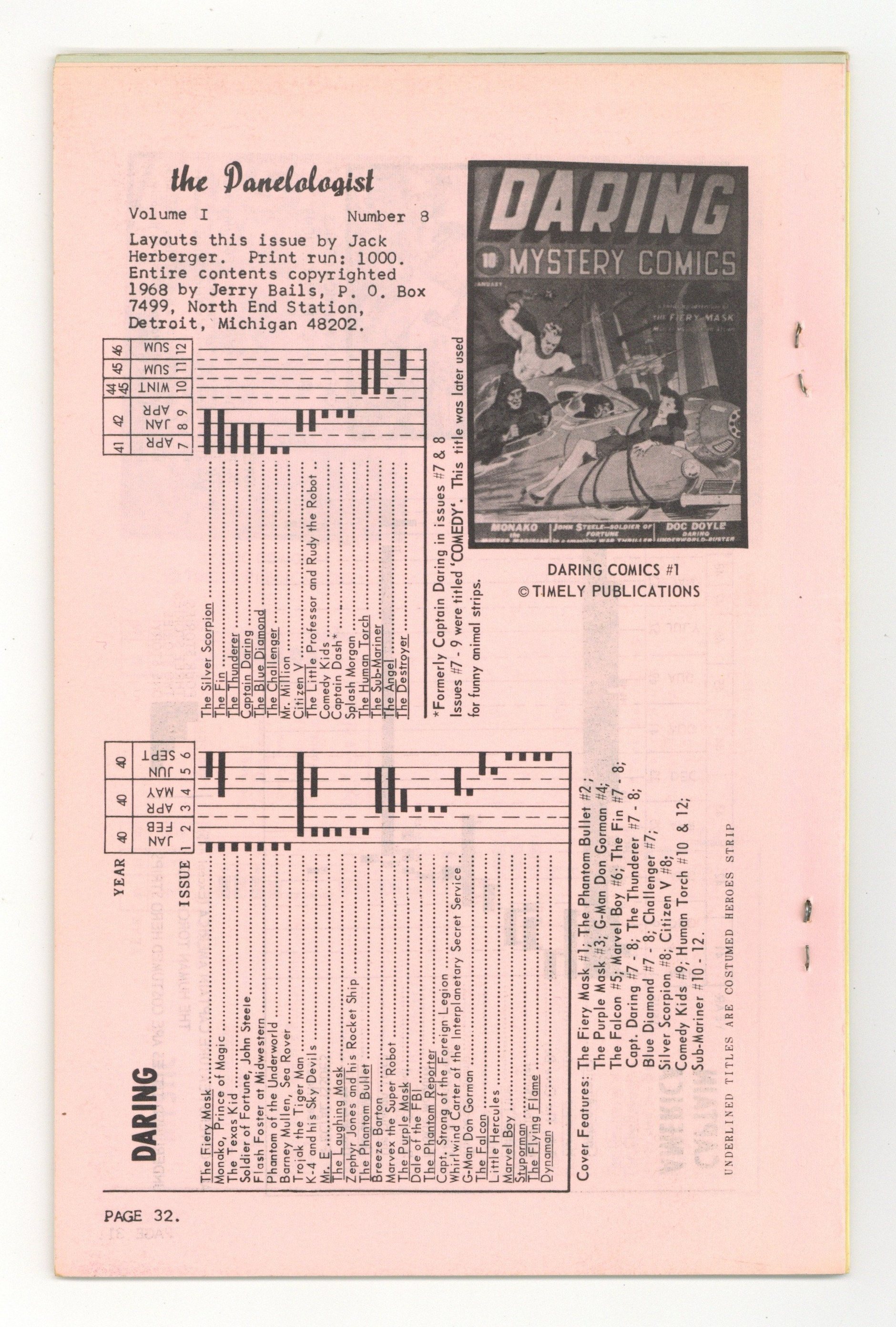 Published 1966 by Jerry G. Bails.Panelologist (1966 Jerry G. Bails) Fanzine Vol. 1 #1-8 FN 6.0 (R)