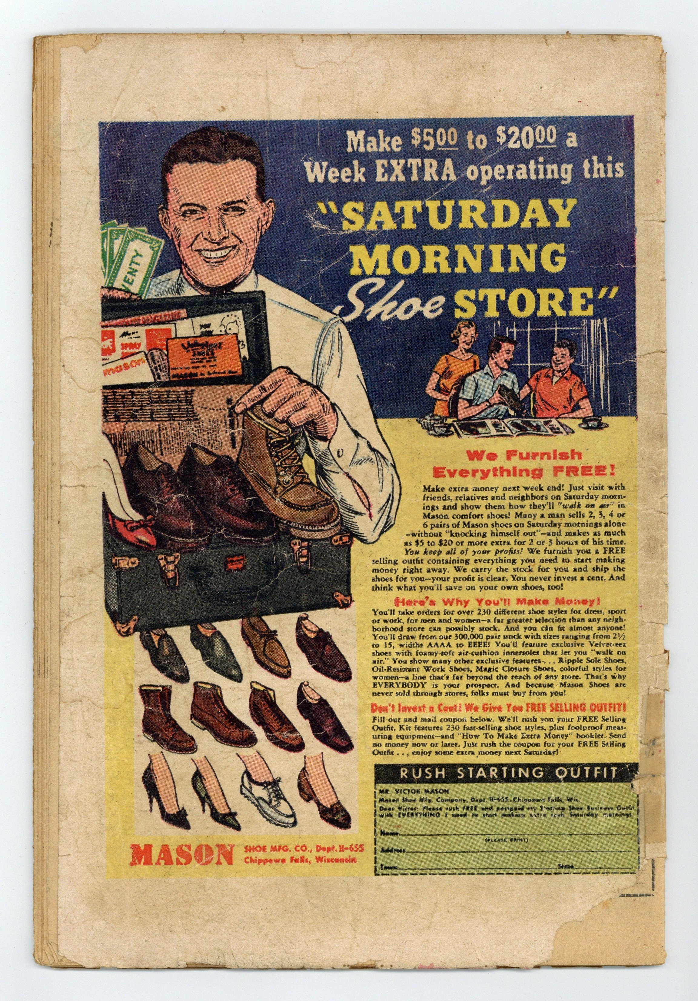 - 2" Cumulative spine split. Water damage.