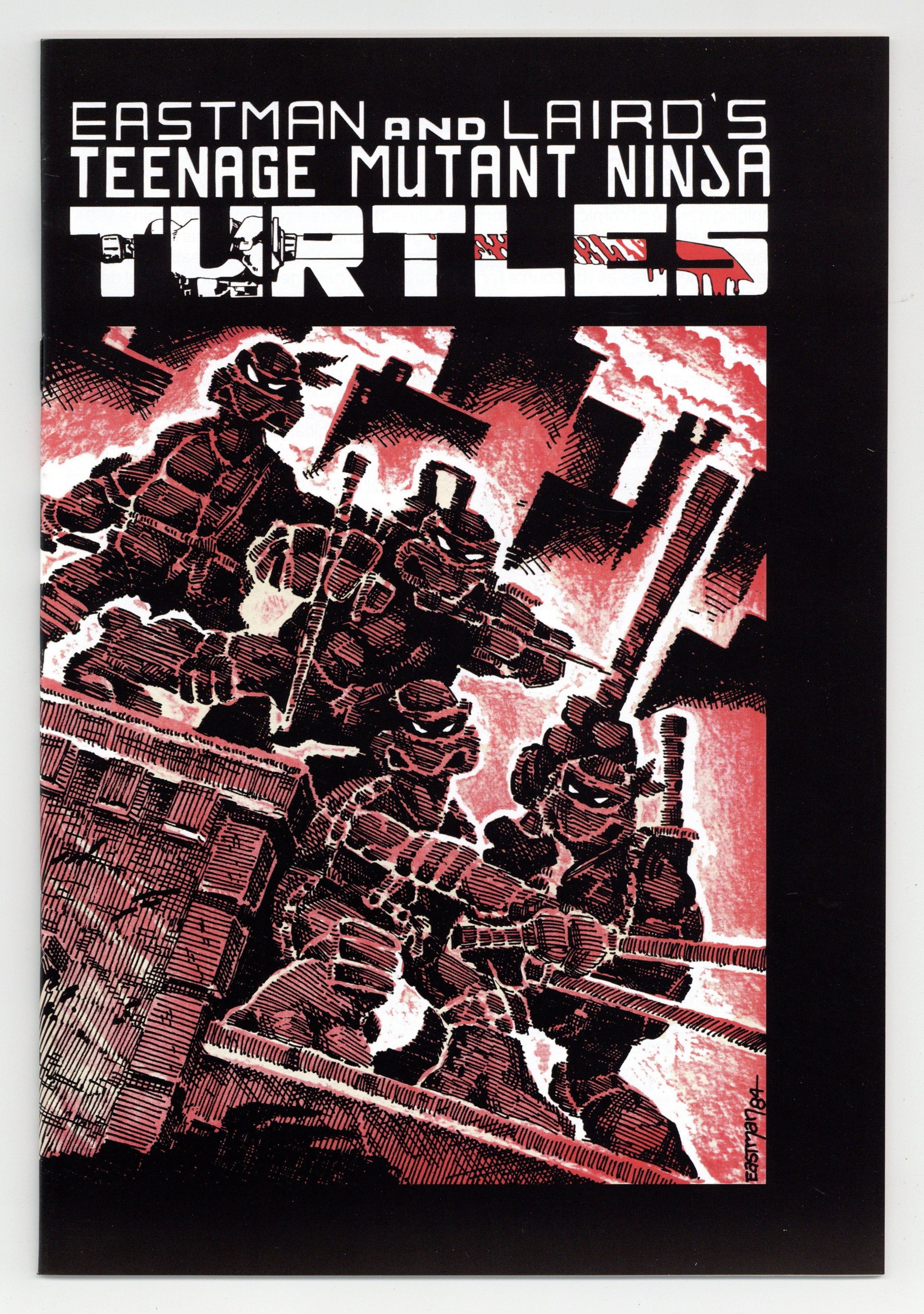 TMNT: A Collection Exclusive Original Wraparound Cover - Limited to 9,275 copies. A full reproduction of TMNT #1 1st Printing created using the TMNT #1 Production Negatives as the source for all 40 pages and scans of the interior covers from an actual 1st printing in celebration of the 40th Anniversary of TMNT. Presented exactly as it was in 1984 using the original dimensions (10 15/16″ x 7 1/2″), interiors, layout, and material (newsprint interiors / lightweight cover paper) – including the unique printing defects and irregularities. This reproduction was even manufactured using the original machinery models (as much as still possible) – including the presses (Goss Community Offset Press), folding machine, and bindery equipment. 40 pages, B&W Grade: NM- 9.2 explanation of grade Condition: Used (collectible)