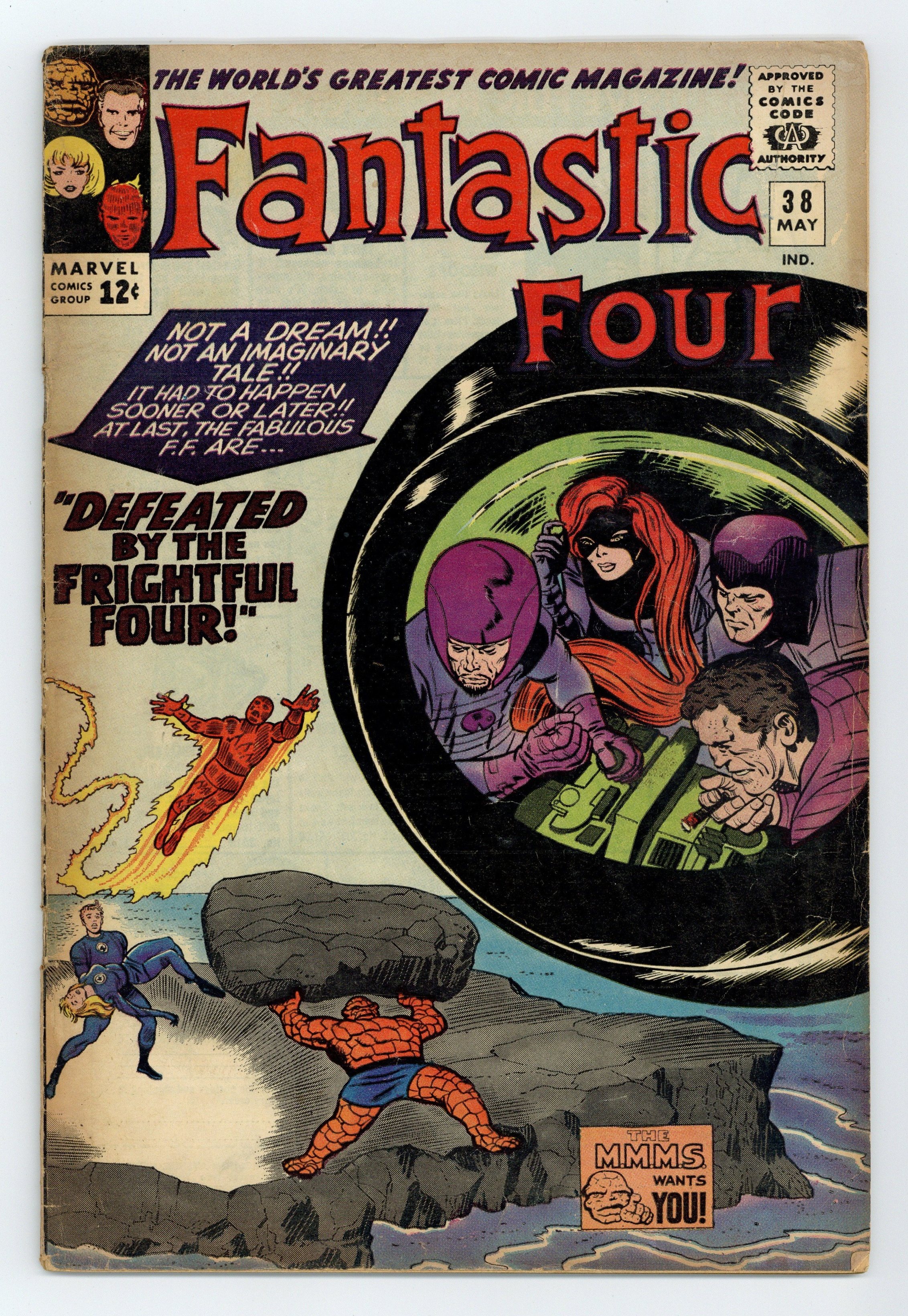 Starts May 25 Cover pencils by Jack Kirby, inks by Chic Stone. Defeated by the Frightful Four!, script by Stan Lee, pencils by Jack Kirby, inks by Chic Stone; The Frightful Four kidnap Sue and lure the FF into a nuclear blast. 36 pgs. $0.12. Cover price $0.12. Grade: GD 2.0 explanation of grade Condition: Used (collectible)