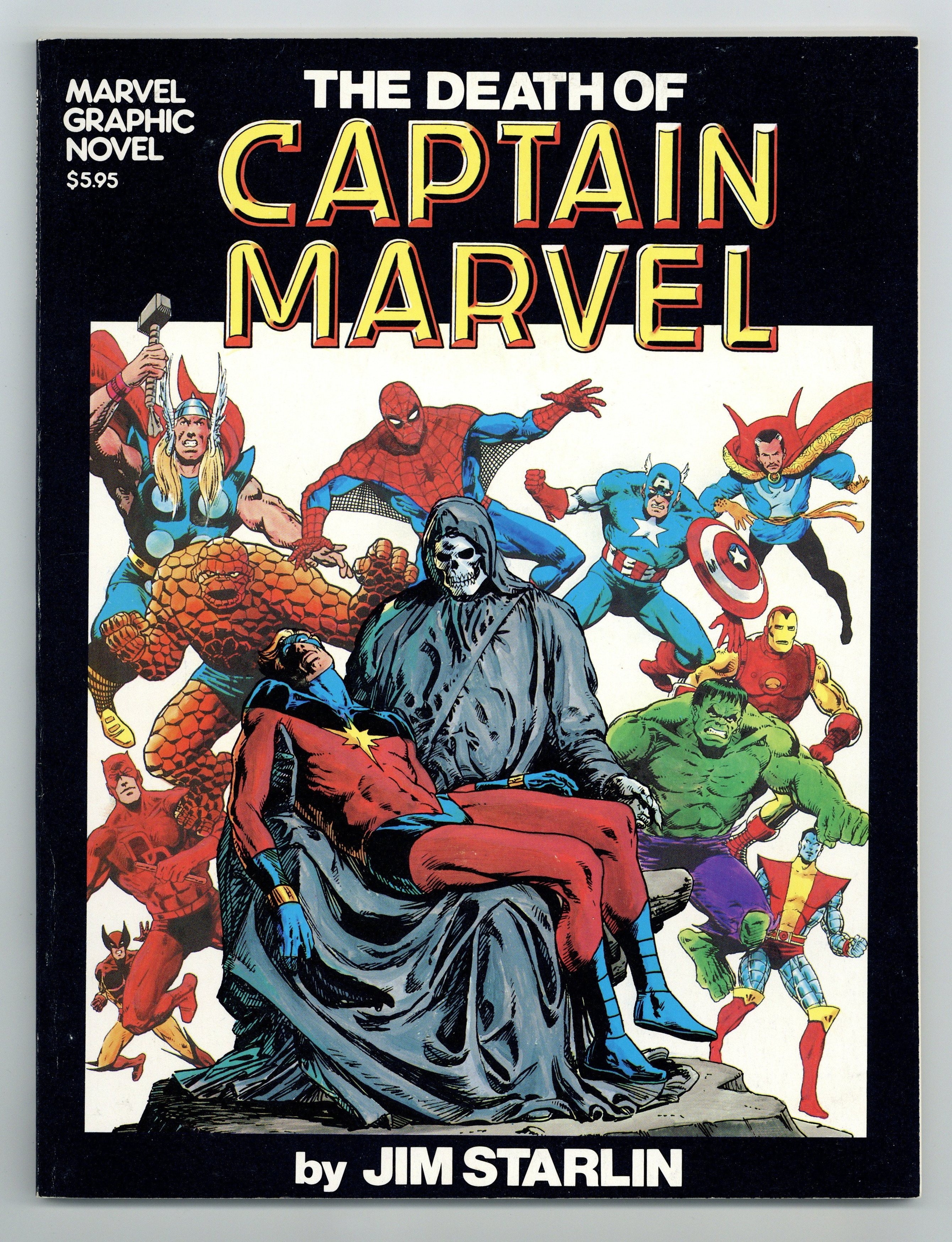 Tags: Marvel Graphic Novel Series (1982-1992) (part 1), Avengers, Daredevil, Fantastic Four, Hulk, Spider-Man, X-MenDeath of Captain Marvel GN (1982 Marvel Graphic Novel) 1-REP FN/VF 7.0