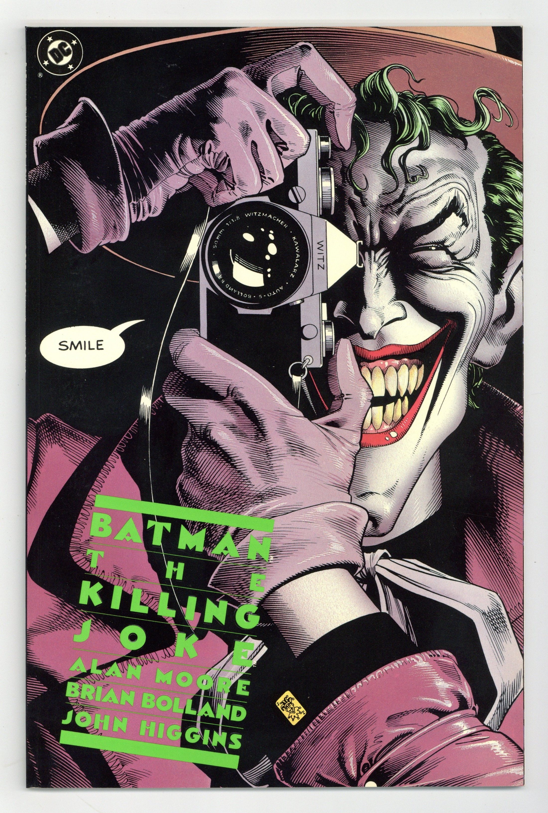 Starts May 18 1st Printing. Batman matches wits with his arch nemesis The Joker in this critically acclaimed, prestige format one-shot. He also laughs at one of his jokes. The book is infamous for the scene in which The Joker shoots and cripples Barbara Gordon, effectively ending her crime fighting career as Batgirl. Written by Alan Moore, with art by Brian Bolland. 52 pages, full color. NOTE: 1st Printing, title is printed in lime green embossed ink. All others are later printings. Cover price $3.50. Grade: FN/VF 7.0 explanation of grade Condition: Used (collectible)