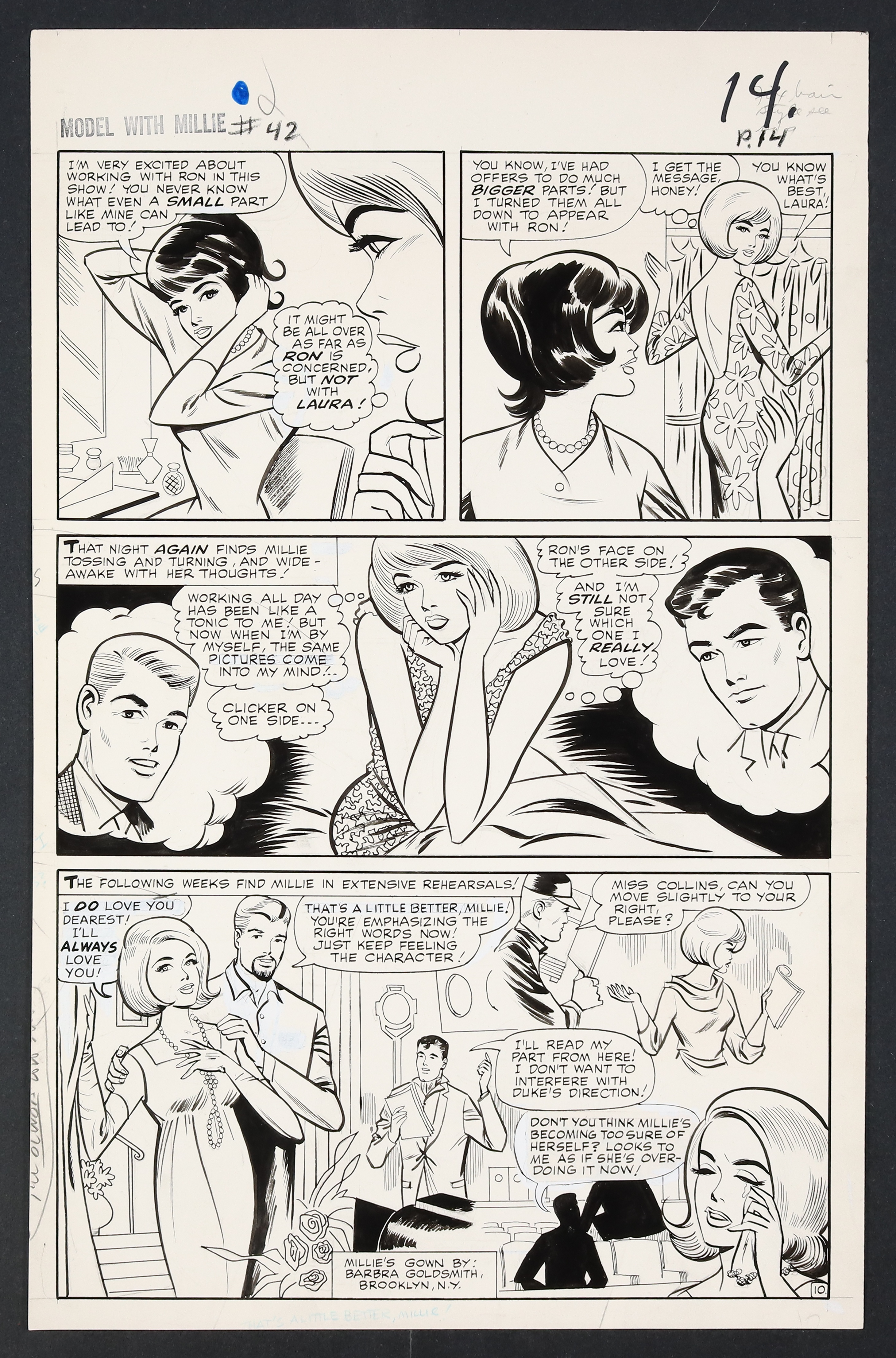 Original Art Modeling With Millie #42 (1965) Complete 18-Page Story 'Heartbreak in Hollywood' Pencils by Stan Goldberg, Inks by Mike Esposito and Dick Ayers