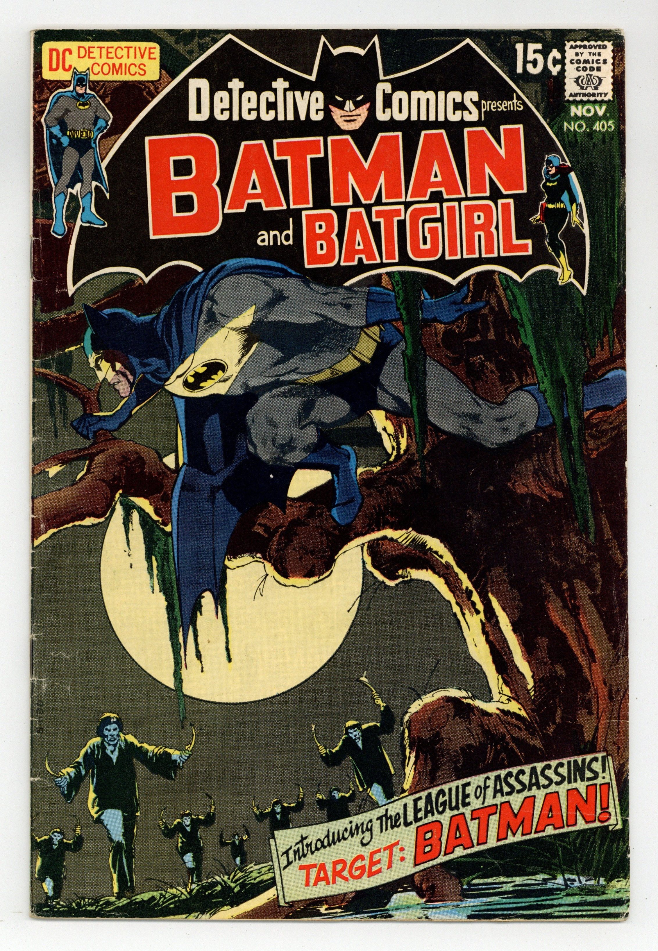 Cover by Neal Adams. "The First of the Assassins!," script by Denny O'Neil, pencils by Bob Brown, inks by Frank Giacoia; Batman is called upon to protect a shipping magnate, his fiancee, and his employee from an assassin on a supposedly deserted island. "The Living Statue!," script by Frank Robbins, pencils by Gil Kane, inks by Frank Giacoia; Continuing from last issue... Batgirl has been investigating the murder of X-rated film director Billy Warlock, whom her friend Jason Bard has been framed for; Her searches brough her to Warlock's studio where she was captured by one of Warlock's actresses Veda who masterminded the whole scheme and is now preparing to trap Batgirl in plaster. Reprint back-up story, "The Sleuth in the Iron Mask!," art by Bob Brown. 36 pgs., full color. $0.15. Cover price $0.15. Grade: GD/VG 3.0 explanation of grade Condition: Used (collectible)