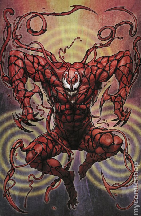 Limited 1 for 100 Retailer Incentive Variant Cover. (W) Charles Soule; Joe Kelly; Al Ewing (A) Jesus Saiz (CA) Skan FIRST YOUR FRIENDS. THEN YOUR FAMILY. THEN YOU. The next epic SPIDER-MAN and VENOM crossover starts here and continues through April! A new super-powered serial killer is on the loose and they're coming for Spidey, Venom and everyone in between. But what terrible secret has CARNAGE learned, and what does it have to do with Spider-Man?! 32 pages, rated T, full color Cover price $5.99.