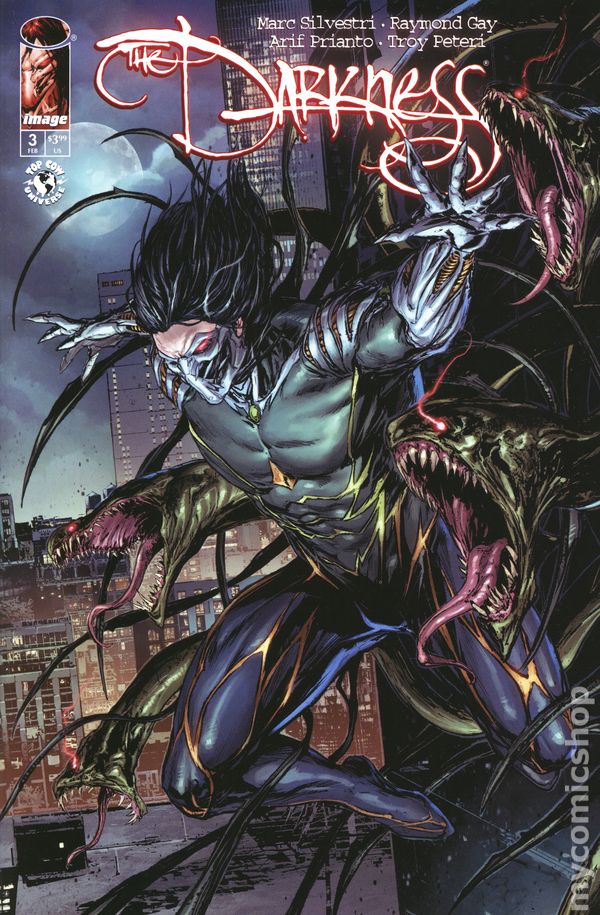 Limited 1 for 10 Retailer Incentive Variant Cover. (W) Marc Silvestri (A) Raymond Gay, Arif Prianto (CA) Raymond Gay, Arif Prianto Now that he understands the nature and power of the Darkness, Jackie Estacado only has one thing on his mind: revenge. And while there's little the Russian mob can do to stop the blood and destruction that's coming, there are other powers in the world, and Jackie may have overstepped his bounds. Plus, meet Jenny's new bodyguards—the Brotherhood of the Darkness! 32 pages, full color, rated T+. Cover price $3.99.