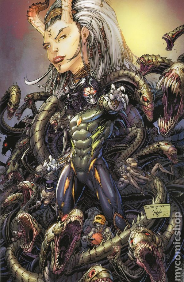 Limited 1 for 25 Retailer Incentive Variant Cover. (W) Marc Silvestri (A) Raymond Gay, Arif Prianto (CA) Brett Booth, Sal Regla, Arif Prianto Now that he understands the nature and power of the Darkness, Jackie Estacado only has one thing on his mind: revenge. And while there's little the Russian mob can do to stop the blood and destruction that's coming, there are other powers in the world, and Jackie may have overstepped his bounds. Plus, meet Jenny's new bodyguards—the Brotherhood of the Darkness! 32 pages, full color, rated T+. Cover price $3.99.