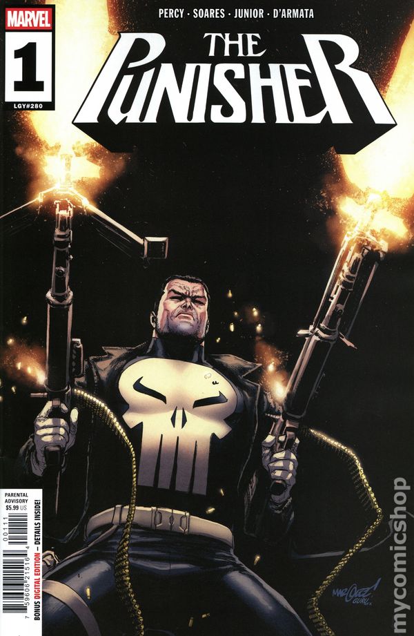 Foil Cover. (W) Benjamin Percy (A) Jose Luis Soares (CA) Ryan Stegman CRIME'S WORST NIGHTMARE IS BACK IN AN ALL-NEW ONGOING SERIES! As unflinching and uncompromising as ever, Frank Castle's memory is damaged and he's hunting for answers and criminals alike! He'll get more than he bargained for of both when the notorious and bloodthirsty JIGSAW returns…with THE PUNISHER dead in his sights! RATED PARENTAL ADVISORY. 32 pages, full color Cover price $5.99.