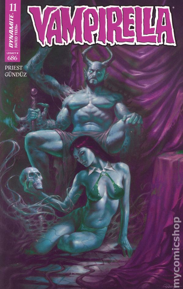 (W) Christopher Priest (A) Ergun Gunduz (CA) Joseph Michael Linsner HELL HATH NO FURY LIKE A MAD GOD SCORNED! A brand-new story arc begins here! When Vampirella rejects the romantic overtures of Chaos the Mad God, the spurned immortal reacts… poorly. The result? Our favorite Vampiri is sent hurtling through space and time, winding up stranded in the waning days of the American Old West. But wherever (or whenever) she finds herself, the Daughter of Drakulon is nothing if not resourceful — something that a gang of predatory cowboy vampires is about to discover first-hand! The legendary Vampi creative team of writer CHRISTOPHER PRIEST and artist ERGÜN GÜNDÜZ reunite for a tale of the good, the bad, and the undead in Vampirella #11 — featuring slyly celebratory covers from LUCIO PARRILLO, DERRICK CHEW, JOSEPH MICHAEL LINSNER, ELIAS CHATZOUDIS, and cosplay by RACHEL HOLLON! 28 pages, rated T+, full color Cover price $4.99.