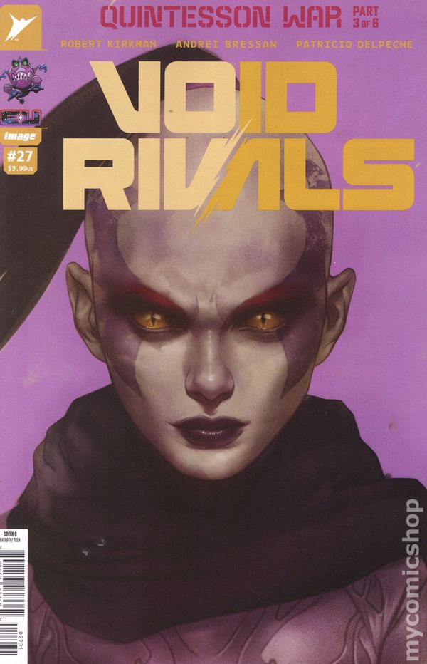 Limited 1 for 25 Retailer Incentive Variant Cover. (W) Robert Kirkman (A) Andrei Bressan, Patricio Delpeche (CA) Leirix Li THE QUINTESSON WAR CONTINUES! The Quintessons gain the upper hand in the brutal war being waged on the Sacred Ring… but could Pythona, of all people, hold the key to victory? 28 pages, rated T, full color Cover price $3.99.