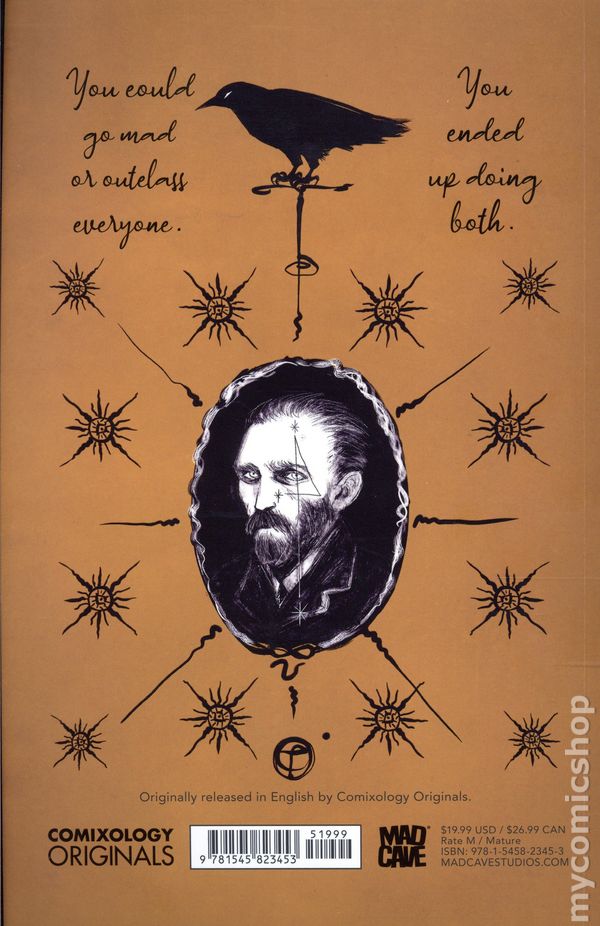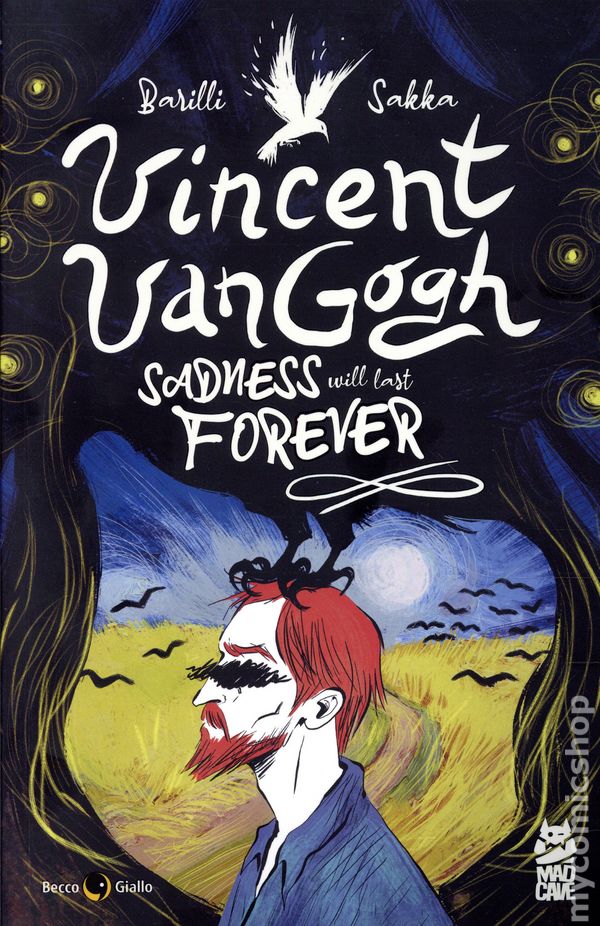 1st printing. Written by Francesco Barilli. Art and cover by Sakka. Translated by Lucy Lenzi. A gorgeously rendered, emotional exploration of the life and death of one of the most famously tormented painters in human history. Through an emotional dialogue between Vincent and his own madness, the artist revisits the most significant loves and losses of his short life. From his tender and tumultuous relationship with his brother Theo, to the famous quarrel with Gauguin that resulted in the self-mutilation of his ear, to the extreme act of self-harm that led to his death, Vincent Van Gogh channeled an extraordinary light as bright today as it was upon his death in 1890. Now in print for the first time in English, Van Gogh: Sadness is Forever casts its own light onto the darkest shadows of the painter's life and inspirations. Softcover, 128 pages, full color. Mature Readers Cover price $19.99.