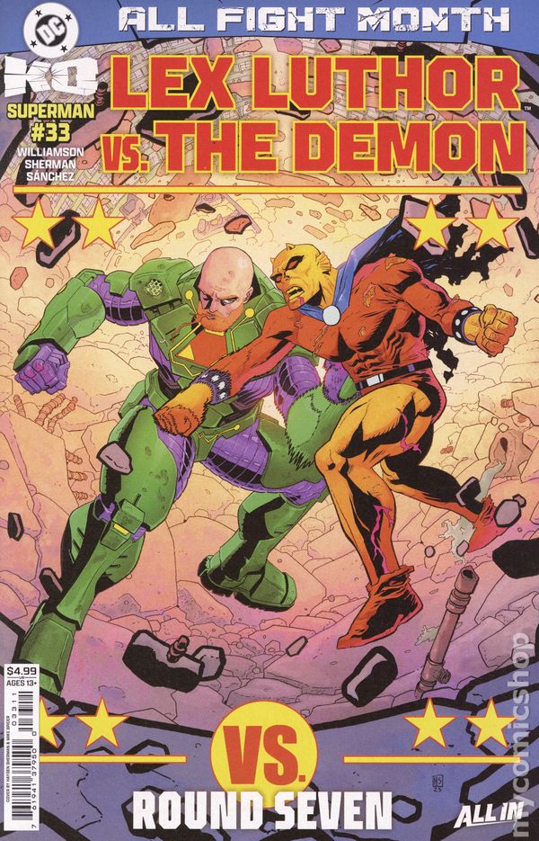 (W) Joshua Williamson (A) Hayden Sherman (CA) Sebastian Fiumara DC K.O. ALL FIGHT MONTH: ROUND 7 OF 8! A fight you never expected but are dying to see! 28 pages, rated 13+, full color Cover price $5.99.