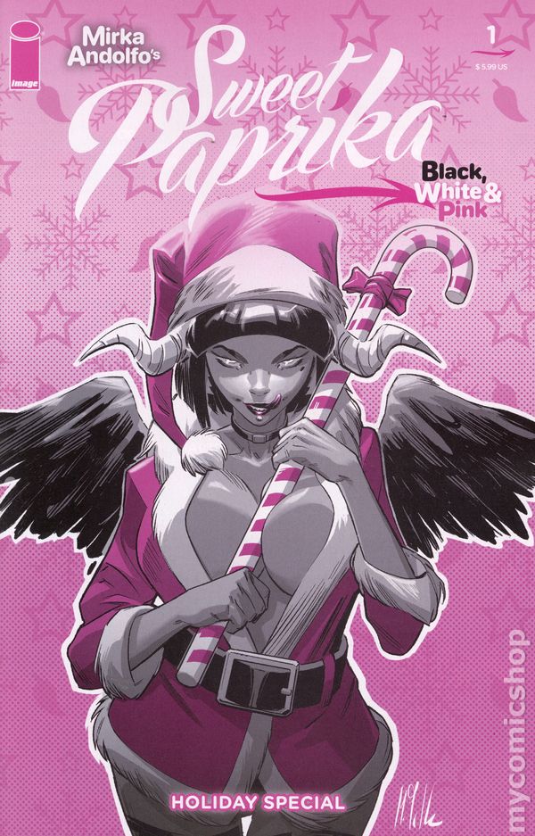 $6 SWEET PAPRIKA B, W & PINK HOLIDAY #1 Cvr A Andolfo - Presale 12/24/2025 Clicking on the links to the eBay listings shown above and then making a purchase may result in MyComicShop earning a commission from the eBay Partner Network.