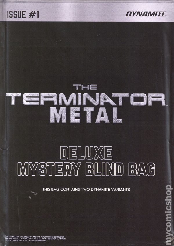 Blind Bag Variant. (W) Declan Shalvey, Rory McConville (A) Lorenzo Re KEEP YOUR FRIENDS CLOSE — AND YOUR ENEMIES CLOSER! In the post-apocalyptic future that follows Judgment Day, the shattered remnants of humanity must make use of every tool they can in their existential battle against the machines — and that includes the deadliest weapons that Skynet sends to annihilate them. For one member of the Resistance, this means trusting his life to a reprogrammed Terminator. Trapped behind enemy lines, the soldier and his repurposed engine of destruction must find a way to both survive and complete their mission — an undertaking with such a low probability of success that it could reboot the Terminator back to its default settings! Acclaimed Terminator and ThunderCats author DECLAN SHALVEY is joined by co-writer RORY MCCONVILLE and returning artist LORENZO RE for a brand-new chapter in his chilling saga of the War Against the Machines with The Terminator: Metal #1 — featuring brutally beautiful covers from SHALVEY, BOB LAYTON, SEBASTIAN PIRIZ, and IVAN TAO! full color Cover price $15.00.